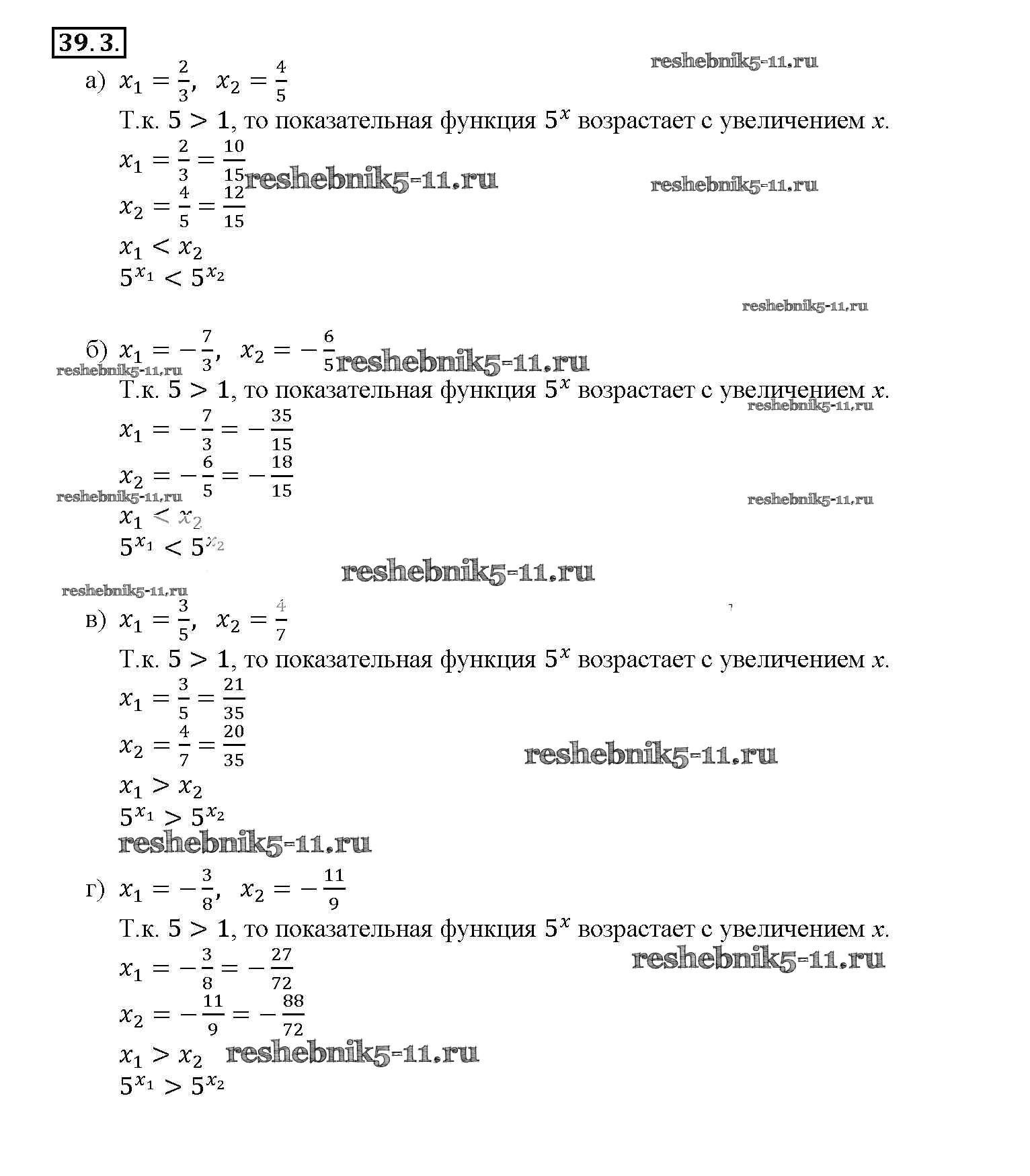 Готовая домашняя работа с ответами по Алгебре за 10, 11 класс Мордкович, Денищева, Корешкова, Мишустина, Семёнов, Тульчинская Задачник Базовый уровень Часть 2 Мнемозина 2015 ФГОС - §39. Показательная функция, ее свойства и график 39. 3