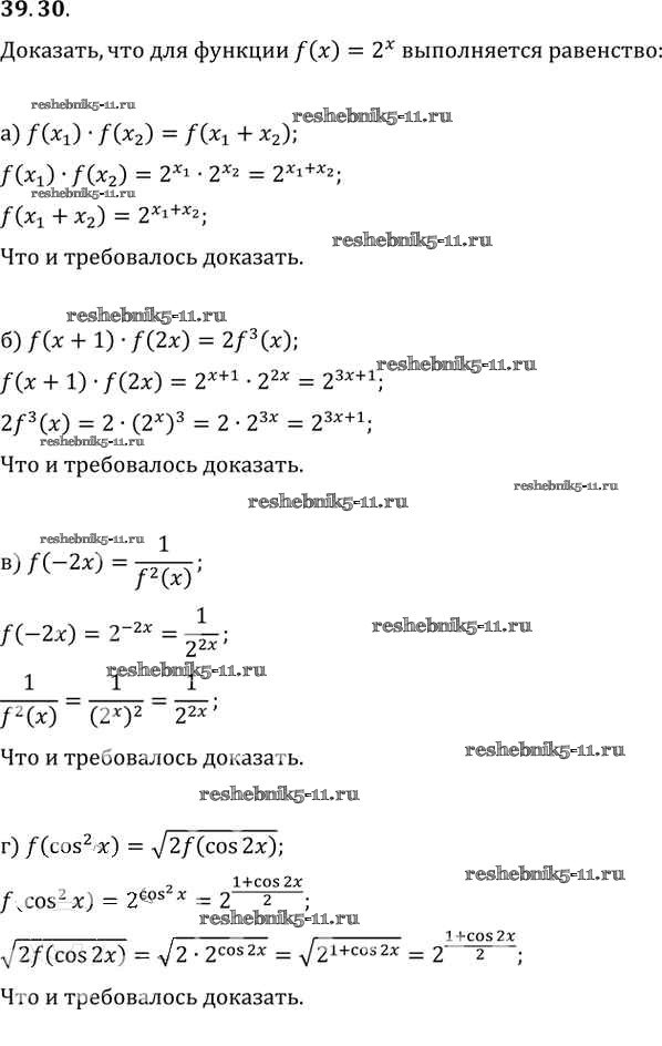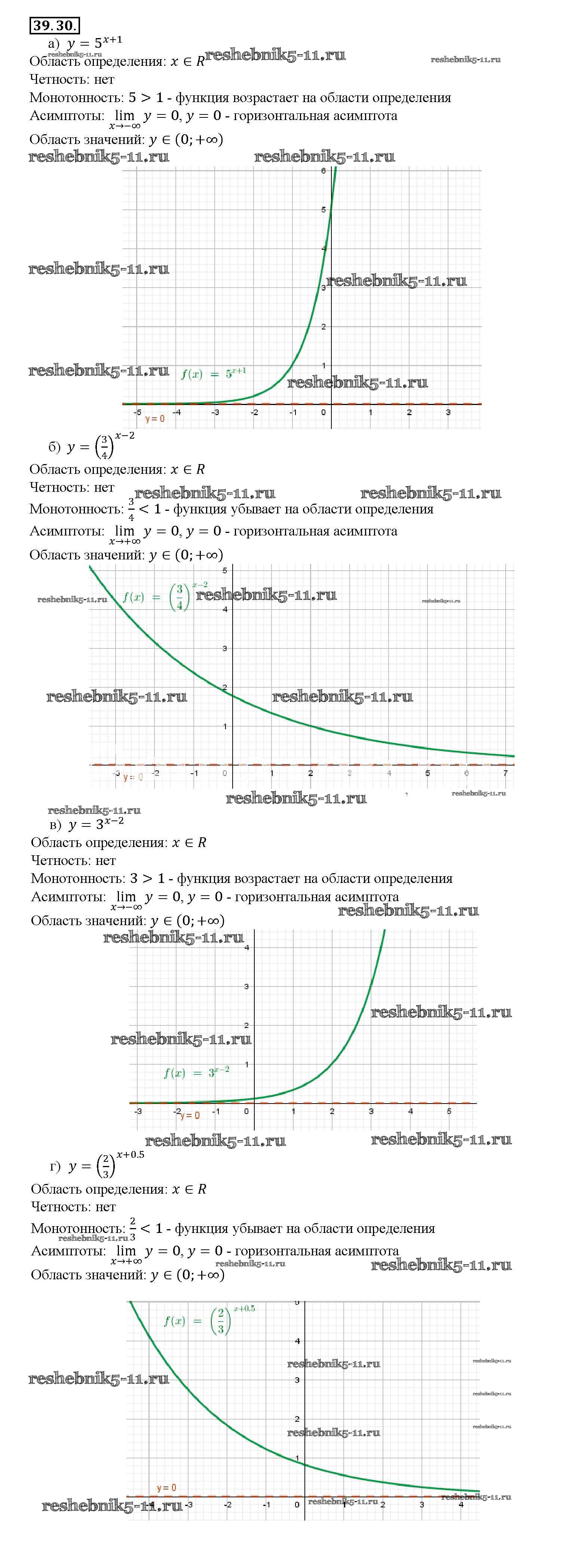 Готовая домашняя работа с ответами по Алгебре за 10, 11 класс Мордкович, Денищева, Корешкова, Мишустина, Семёнов, Тульчинская Задачник Базовый уровень Часть 2 Мнемозина 2015 ФГОС - §39. Показательная функция, ее свойства и график 39. 30