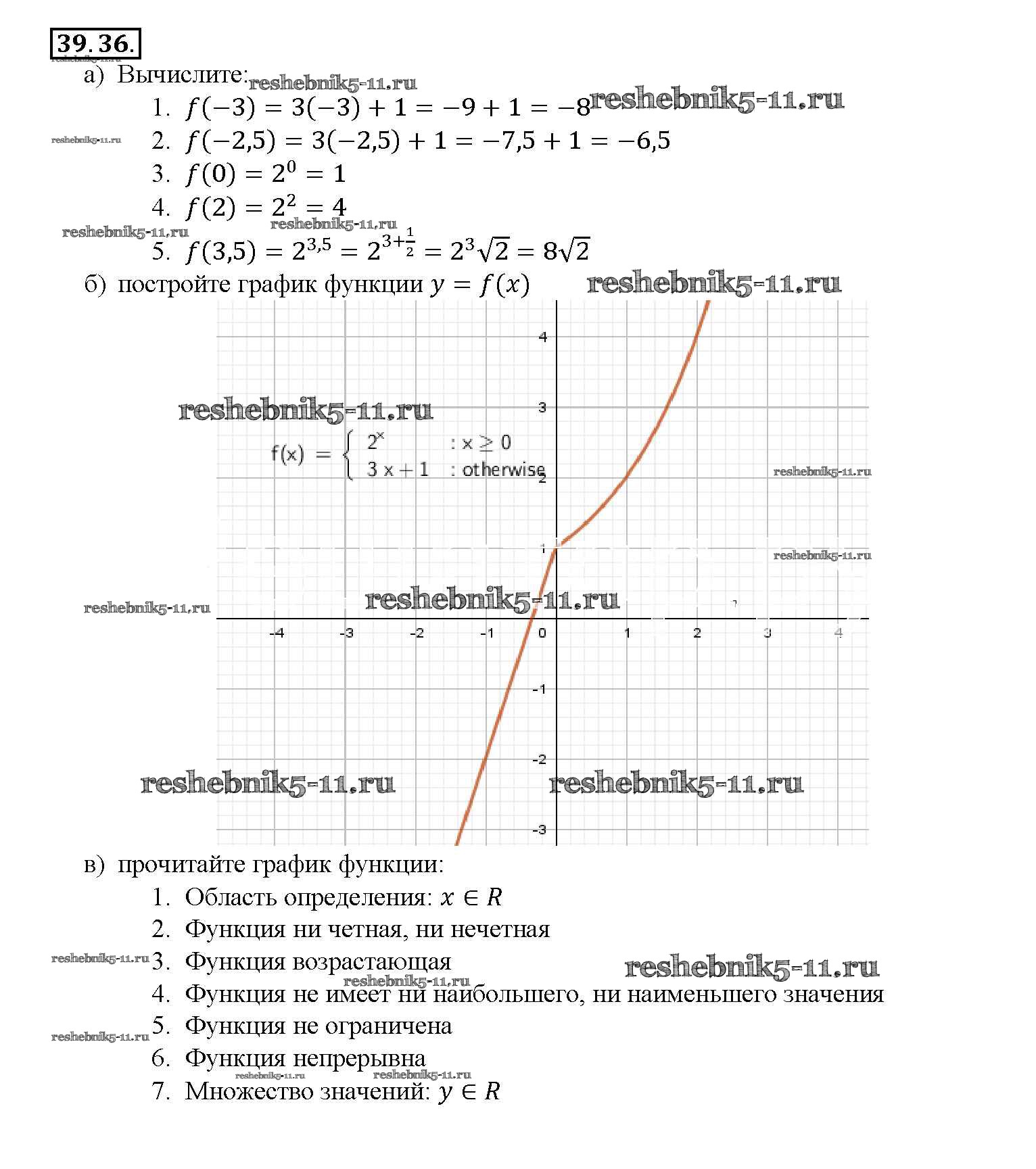 Готовая домашняя работа с ответами по Алгебре за 10, 11 класс Мордкович, Денищева, Корешкова, Мишустина, Семёнов, Тульчинская Задачник Базовый уровень Часть 2 Мнемозина 2015 ФГОС - §39. Показательная функция, ее свойства и график 39. 36