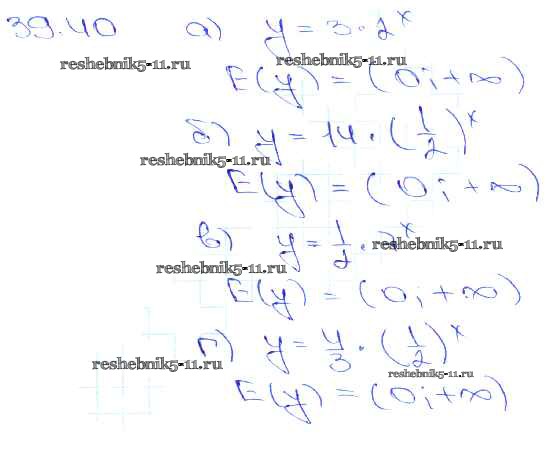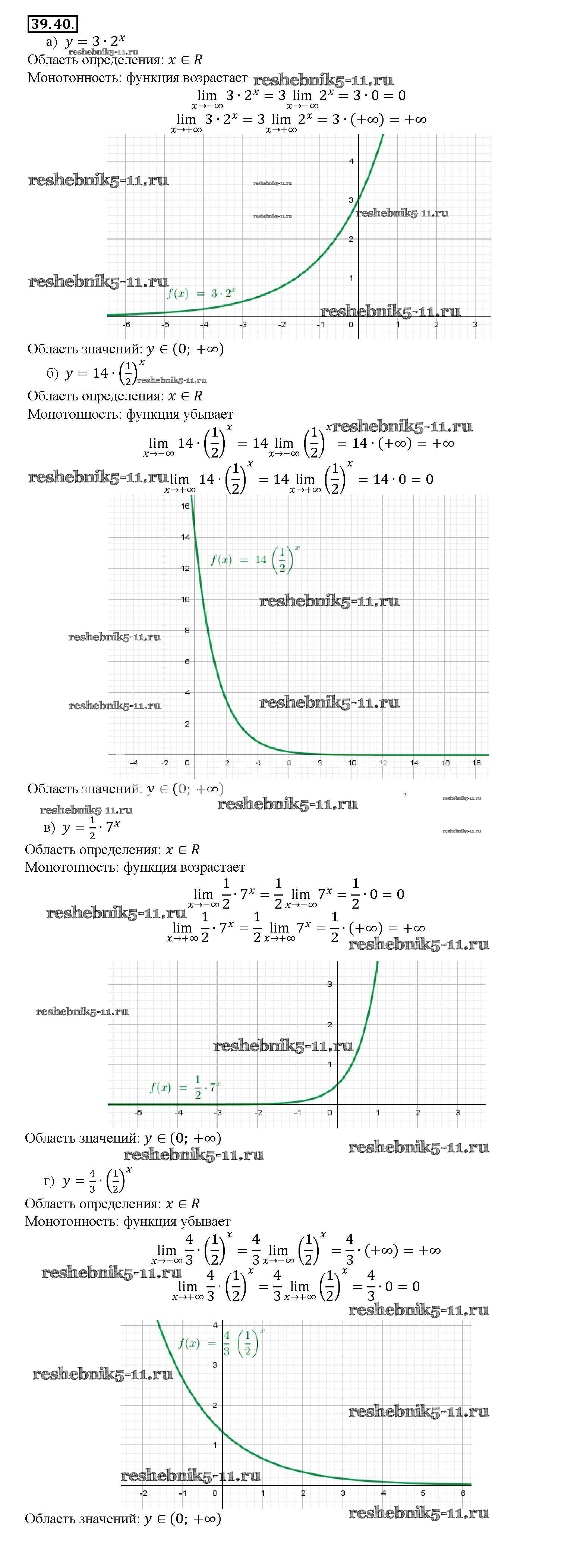 Готовая домашняя работа с ответами по Алгебре за 10, 11 класс Мордкович, Денищева, Корешкова, Мишустина, Семёнов, Тульчинская Задачник Базовый уровень Часть 2 Мнемозина 2015 ФГОС - §39. Показательная функция, ее свойства и график 39. 40