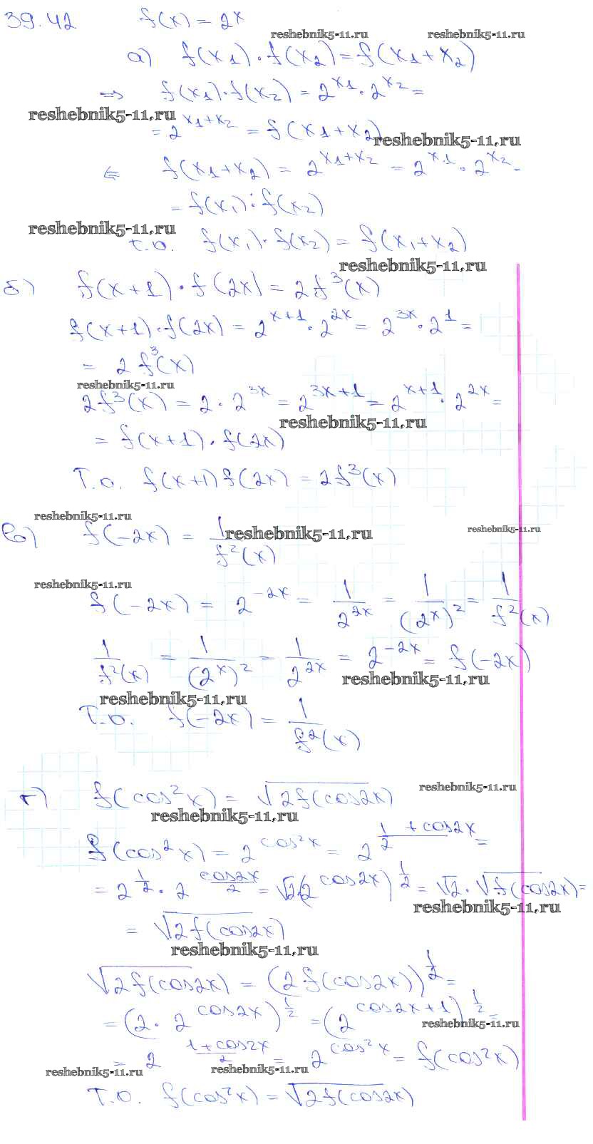 Готовая домашняя работа с ответами по Алгебре за 10, 11 класс Мордкович, Денищева, Корешкова, Мишустина, Семёнов, Тульчинская Задачник Базовый уровень Часть 2 Мнемозина 2015 ФГОС - §39. Показательная функция, ее свойства и график 39. 42