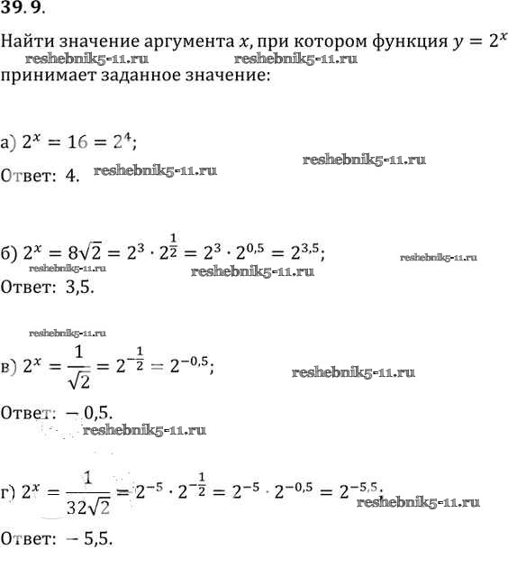 Готовая домашняя работа с ответами по Алгебре за 10, 11 класс Мордкович, Денищева, Корешкова, Мишустина, Семёнов, Тульчинская Задачник Базовый уровень Часть 2 Мнемозина 2015 ФГОС - §39. Показательная функция, ее свойства и график 39. 9