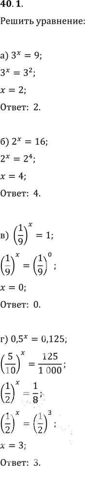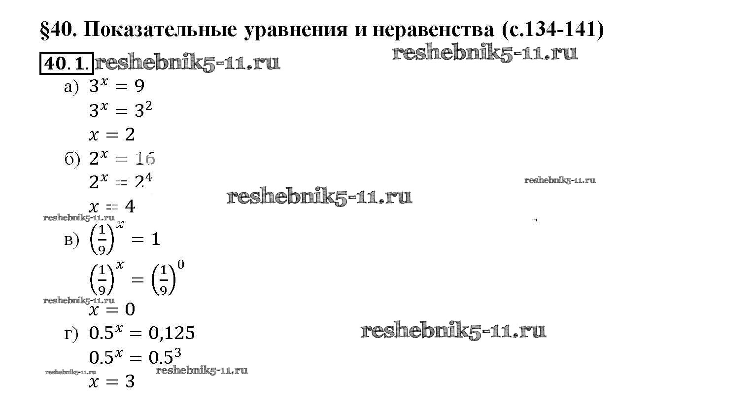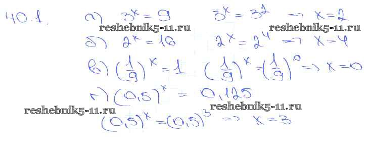 Готовая домашняя работа с ответами по Алгебре за 10, 11 класс Мордкович, Денищева, Корешкова, Мишустина, Семёнов, Тульчинская Задачник Базовый уровень Часть 2 Мнемозина 2015 ФГОС - §40. Показательные уравнения и неравенства 40. 1