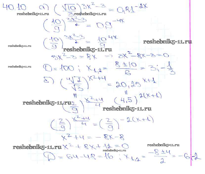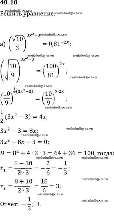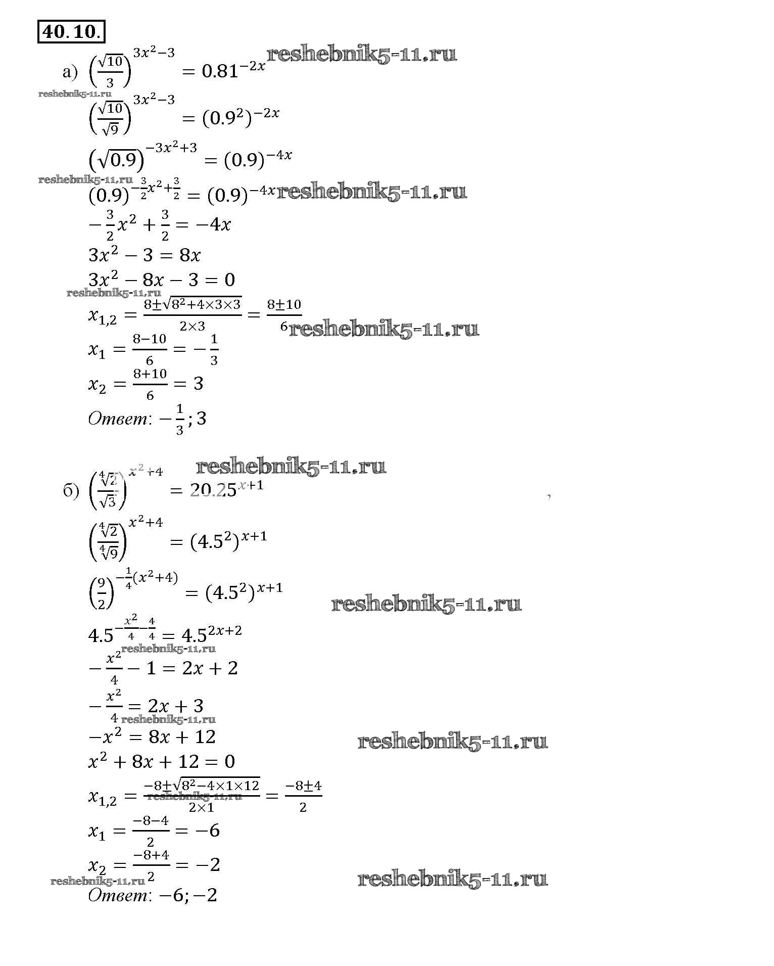 Готовая домашняя работа с ответами по Алгебре за 10, 11 класс Мордкович, Денищева, Корешкова, Мишустина, Семёнов, Тульчинская Задачник Базовый уровень Часть 2 Мнемозина 2015 ФГОС - §40. Показательные уравнения и неравенства 40. 10