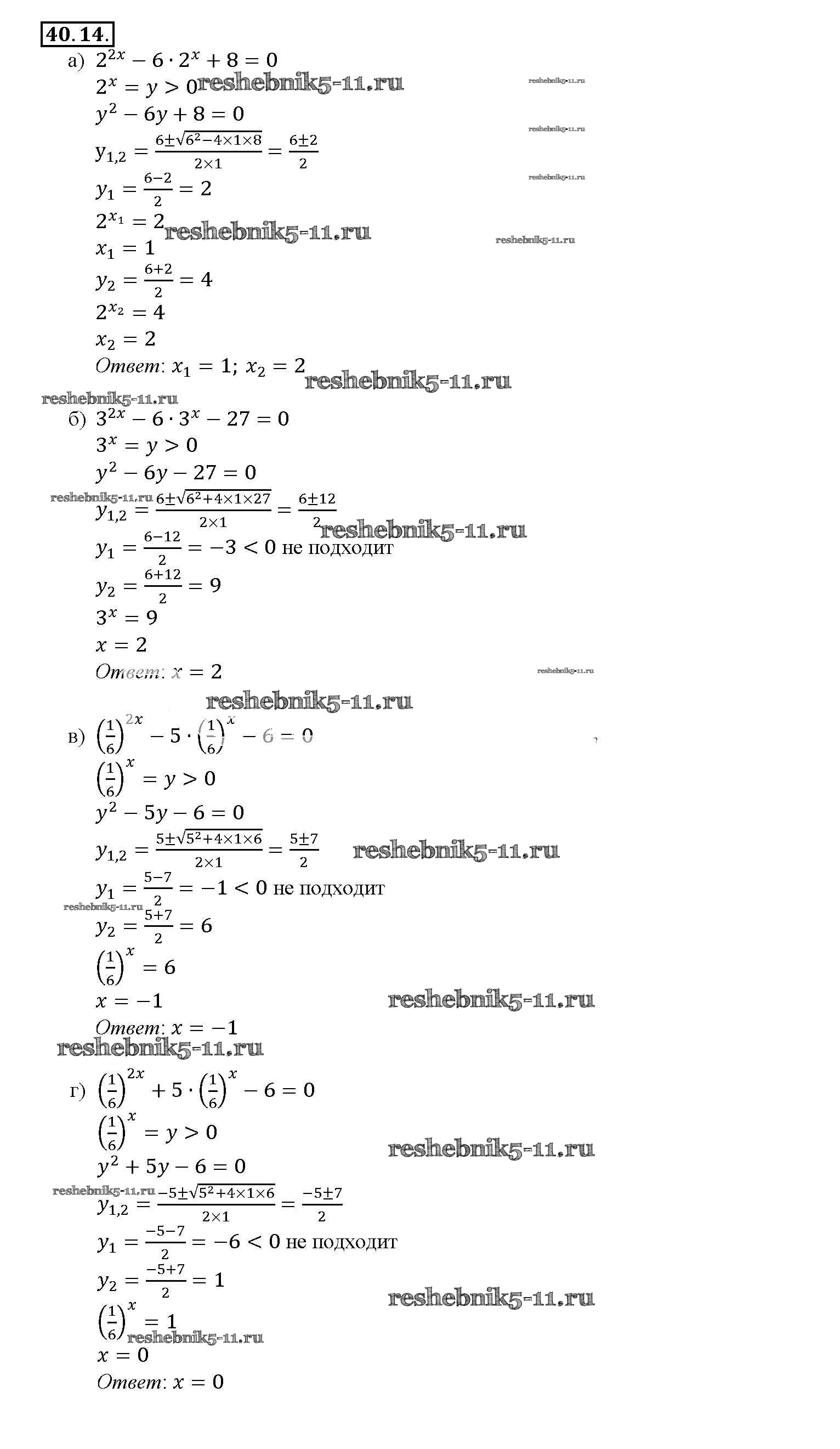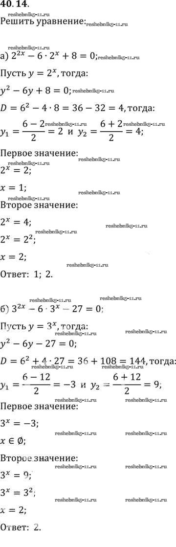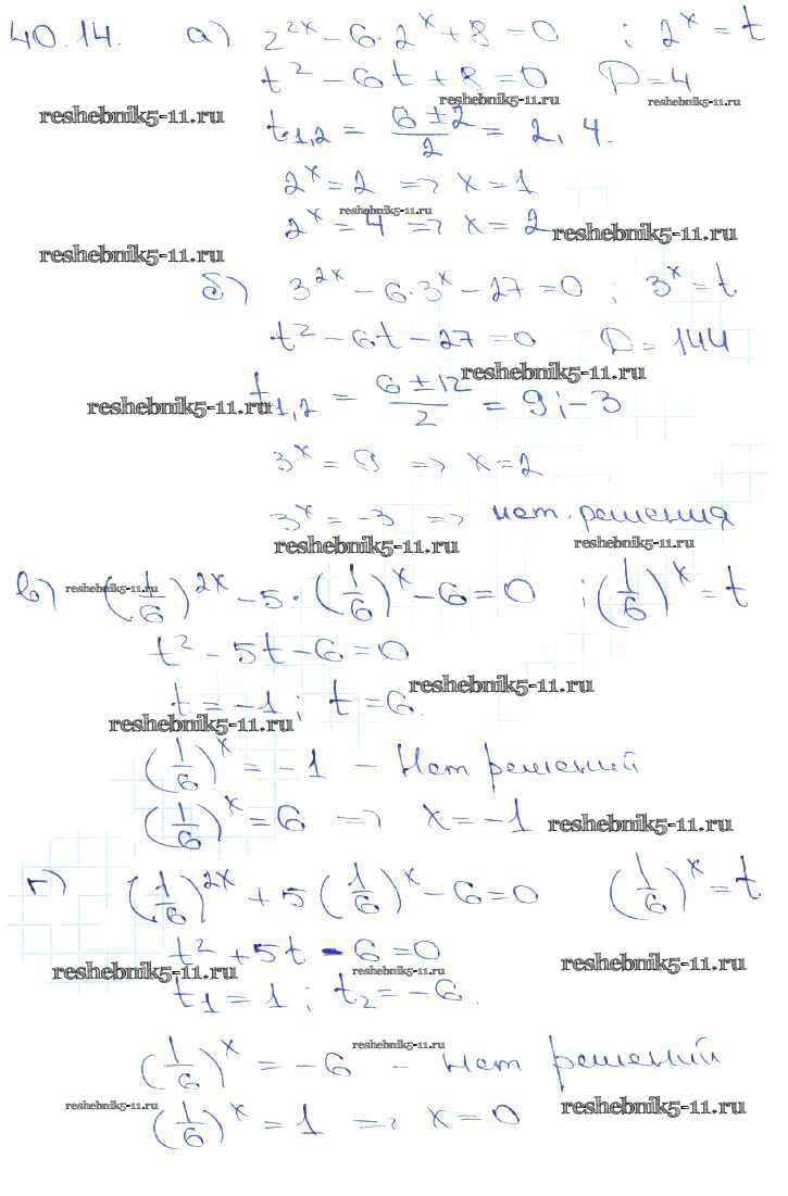 Готовая домашняя работа с ответами по Алгебре за 10, 11 класс Мордкович, Денищева, Корешкова, Мишустина, Семёнов, Тульчинская Задачник Базовый уровень Часть 2 Мнемозина 2015 ФГОС - §40. Показательные уравнения и неравенства 40. 14