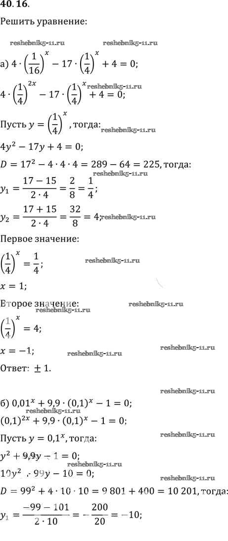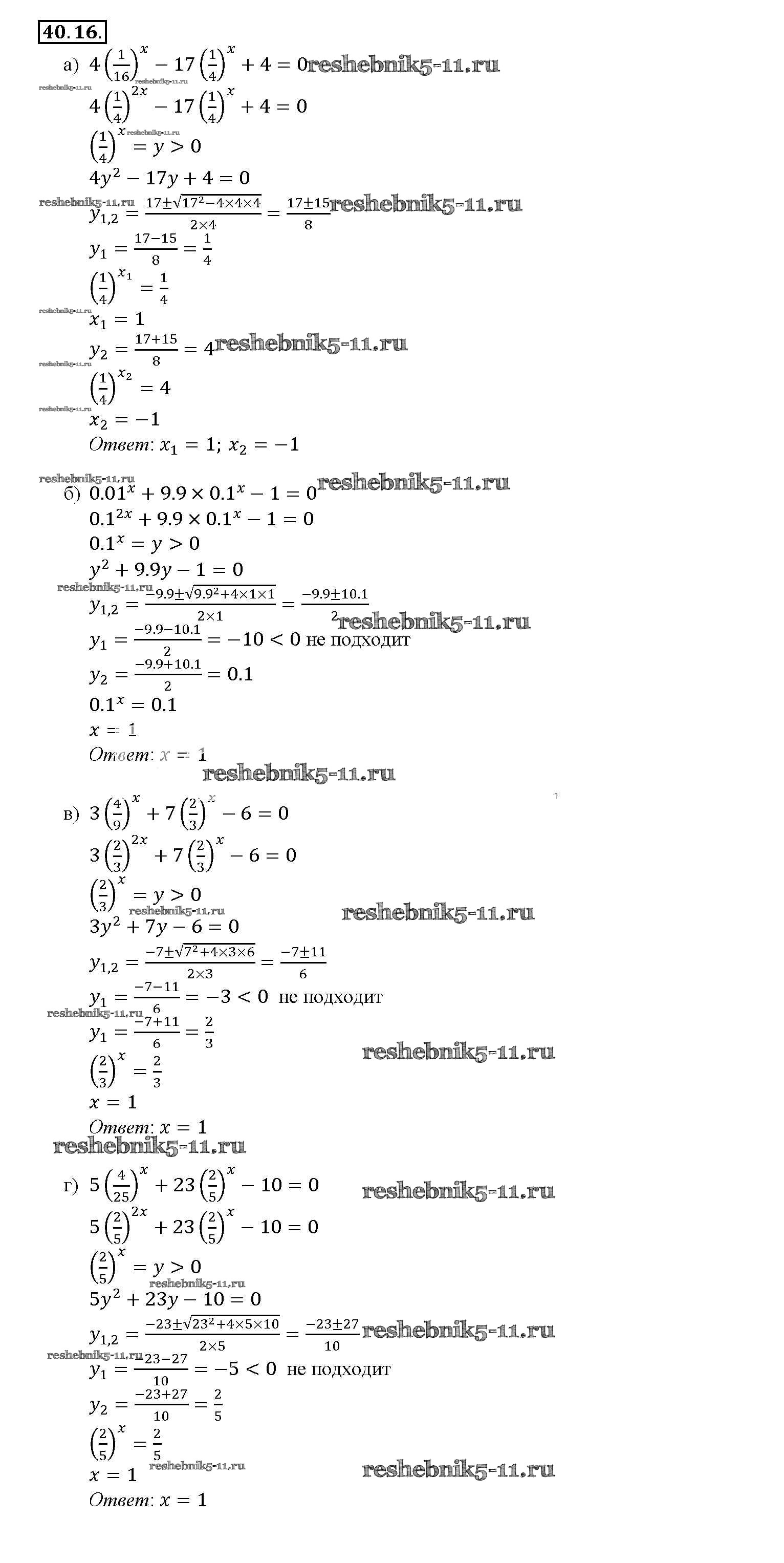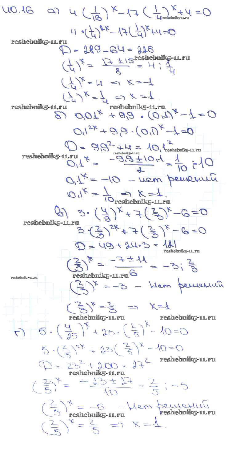 Готовая домашняя работа с ответами по Алгебре за 10, 11 класс Мордкович, Денищева, Корешкова, Мишустина, Семёнов, Тульчинская Задачник Базовый уровень Часть 2 Мнемозина 2015 ФГОС - §40. Показательные уравнения и неравенства 40. 16
