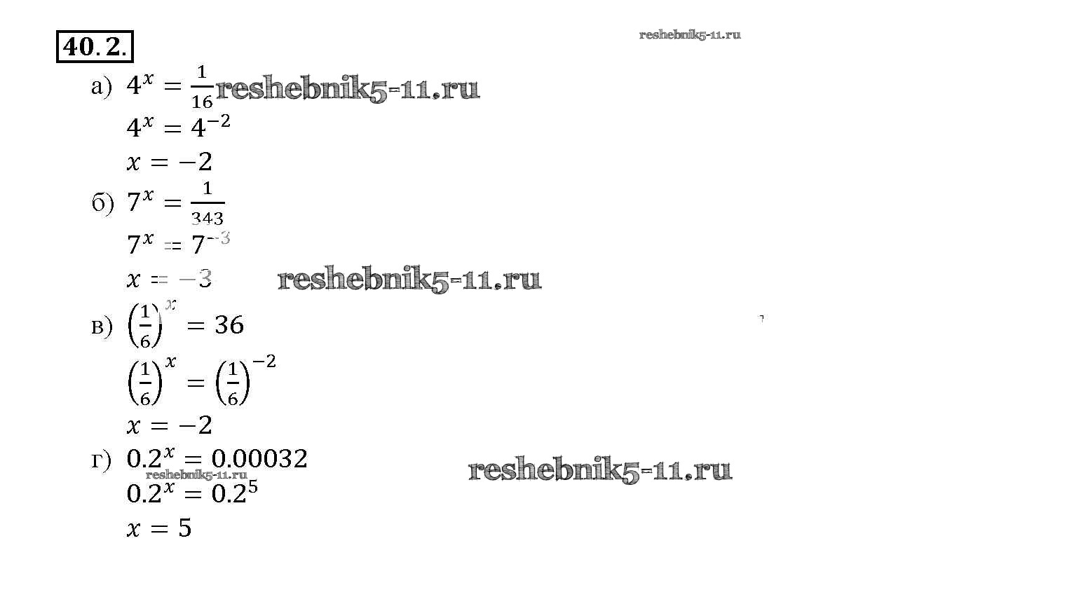 Готовая домашняя работа с ответами по Алгебре за 10, 11 класс Мордкович, Денищева, Корешкова, Мишустина, Семёнов, Тульчинская Задачник Базовый уровень Часть 2 Мнемозина 2015 ФГОС - §40. Показательные уравнения и неравенства 40. 2