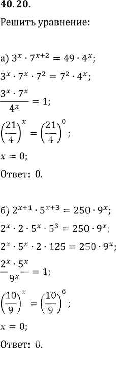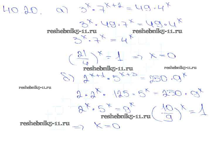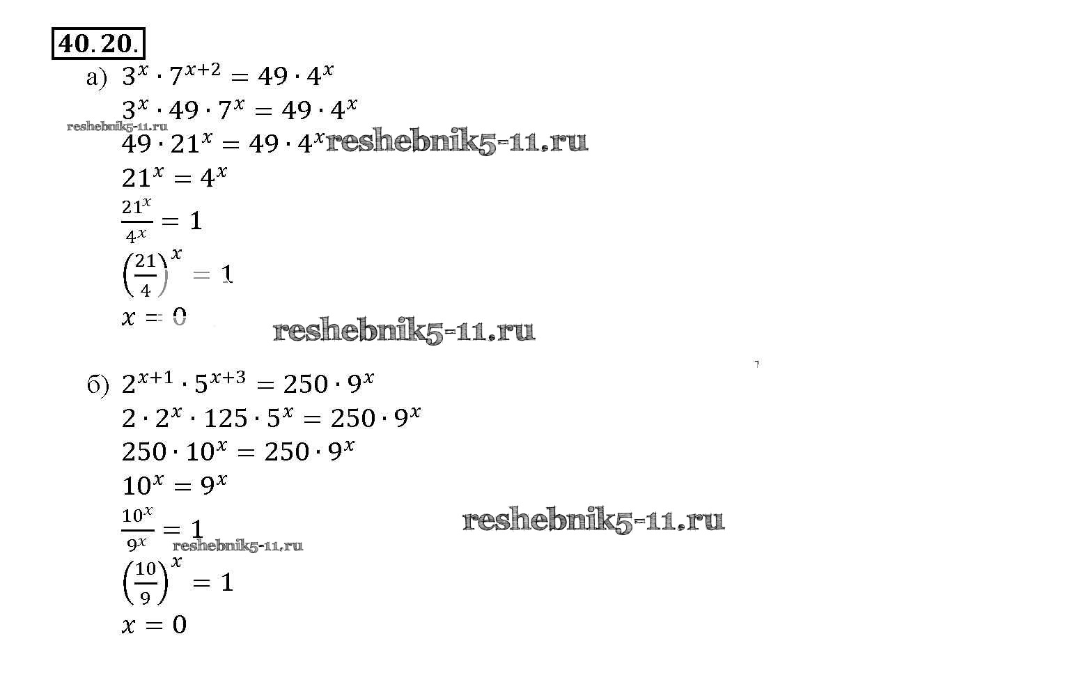 Готовая домашняя работа с ответами по Алгебре за 10, 11 класс Мордкович, Денищева, Корешкова, Мишустина, Семёнов, Тульчинская Задачник Базовый уровень Часть 2 Мнемозина 2015 ФГОС - §40. Показательные уравнения и неравенства 40. 20