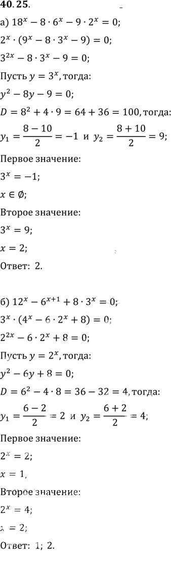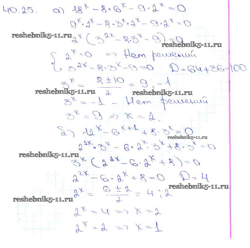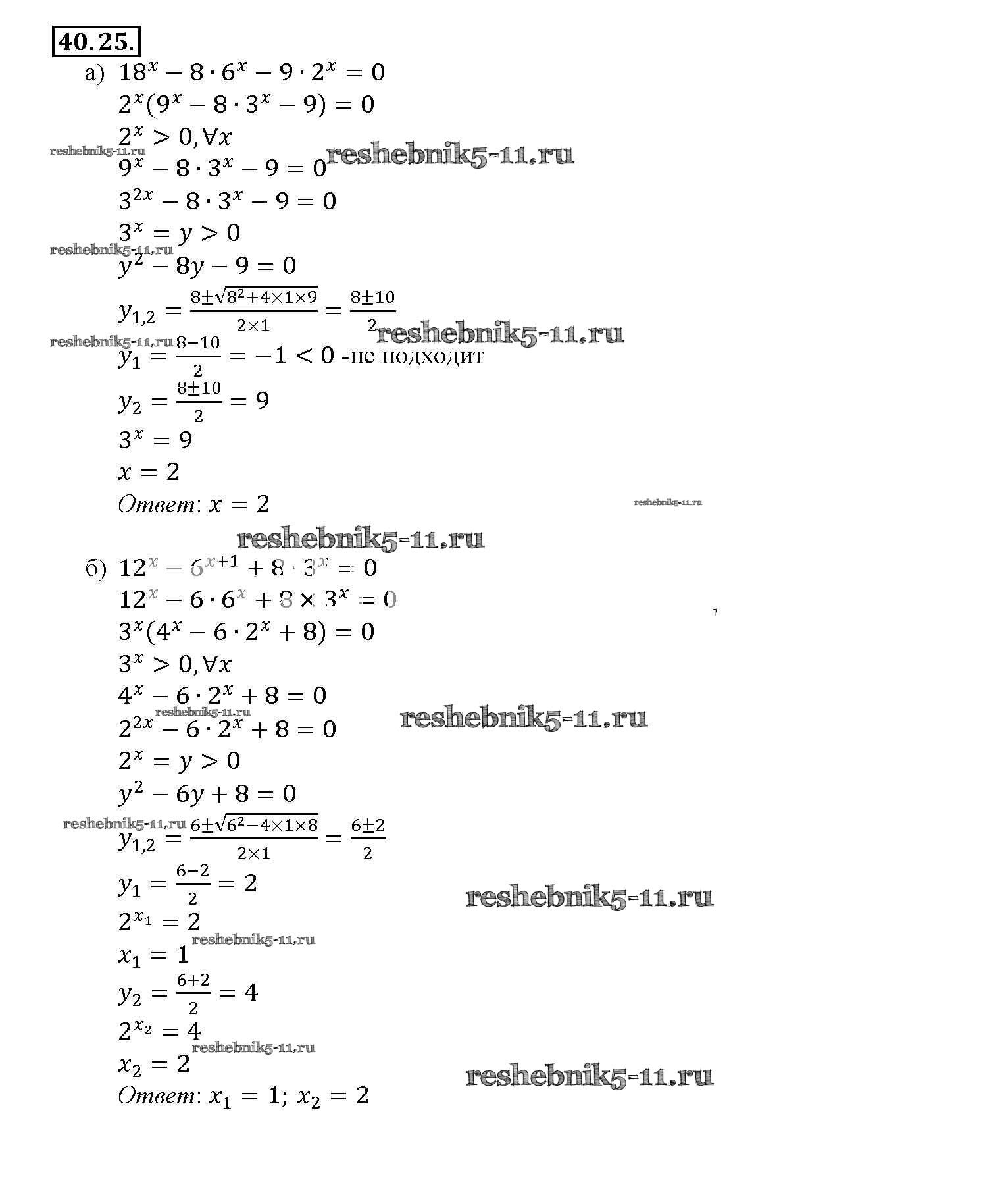 Готовая домашняя работа с ответами по Алгебре за 10, 11 класс Мордкович, Денищева, Корешкова, Мишустина, Семёнов, Тульчинская Задачник Базовый уровень Часть 2 Мнемозина 2015 ФГОС - §40. Показательные уравнения и неравенства 40. 25