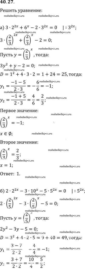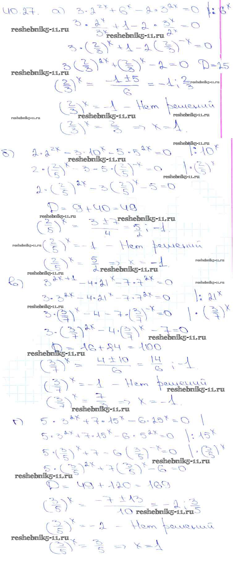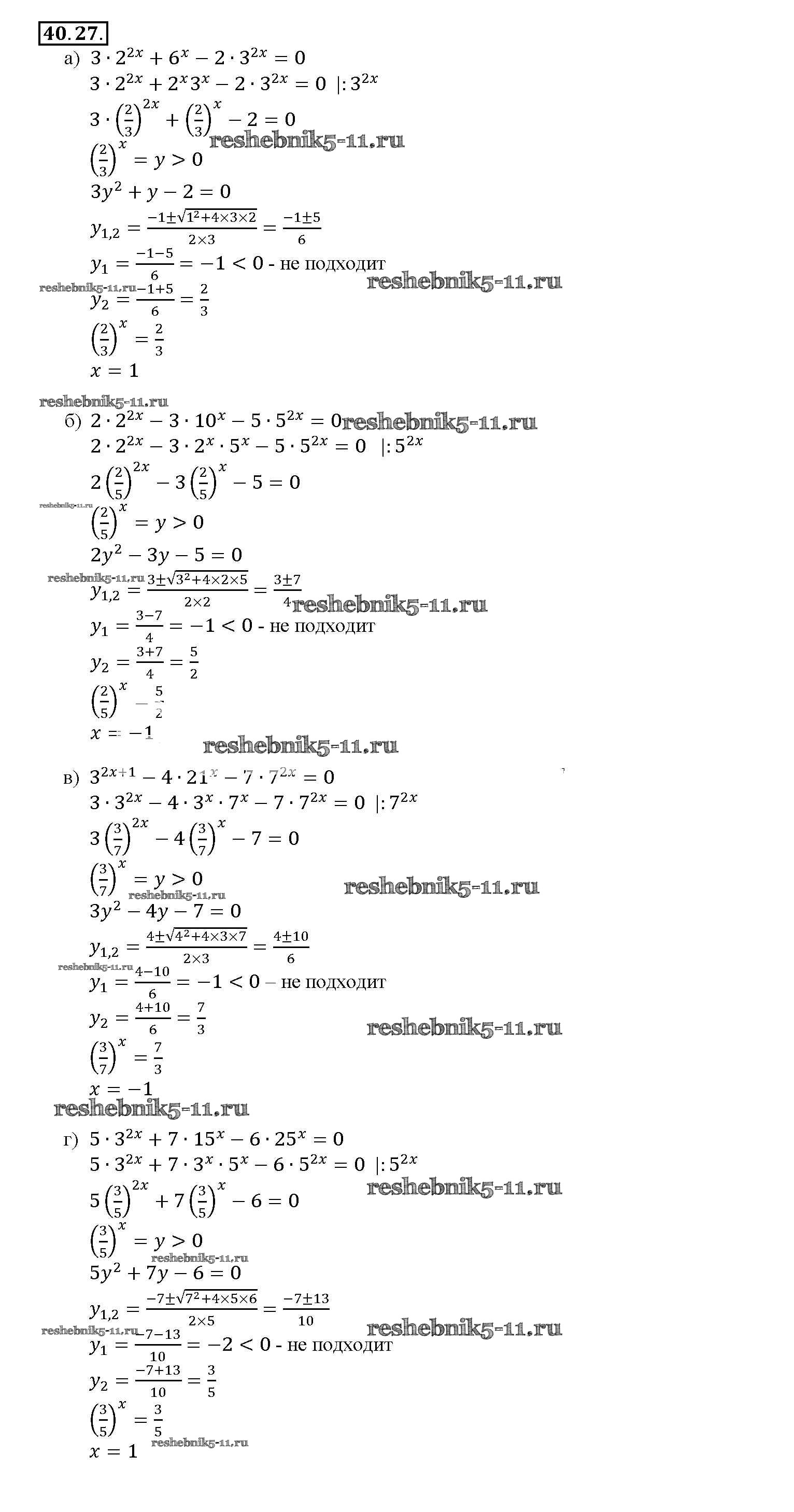 Готовая домашняя работа с ответами по Алгебре за 10, 11 класс Мордкович, Денищева, Корешкова, Мишустина, Семёнов, Тульчинская Задачник Базовый уровень Часть 2 Мнемозина 2015 ФГОС - §40. Показательные уравнения и неравенства 40. 27