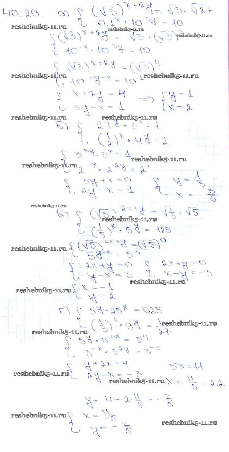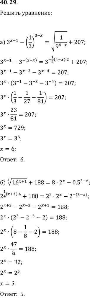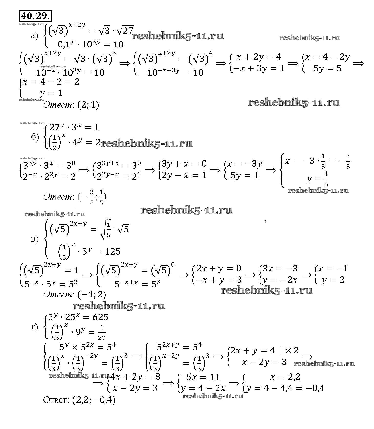Готовая домашняя работа с ответами по Алгебре за 10, 11 класс Мордкович, Денищева, Корешкова, Мишустина, Семёнов, Тульчинская Задачник Базовый уровень Часть 2 Мнемозина 2015 ФГОС - §40. Показательные уравнения и неравенства 40. 29