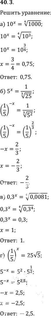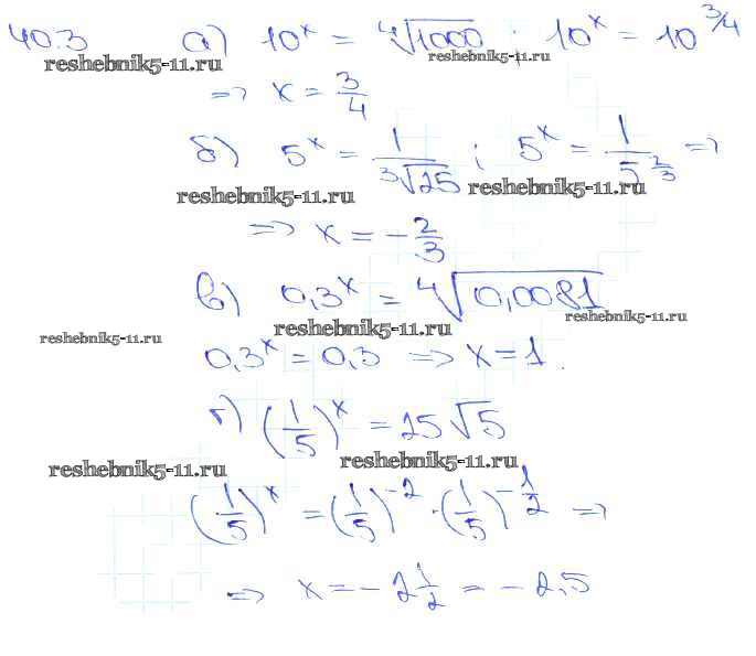 Готовая домашняя работа с ответами по Алгебре за 10, 11 класс Мордкович, Денищева, Корешкова, Мишустина, Семёнов, Тульчинская Задачник Базовый уровень Часть 2 Мнемозина 2015 ФГОС - §40. Показательные уравнения и неравенства 40. 3