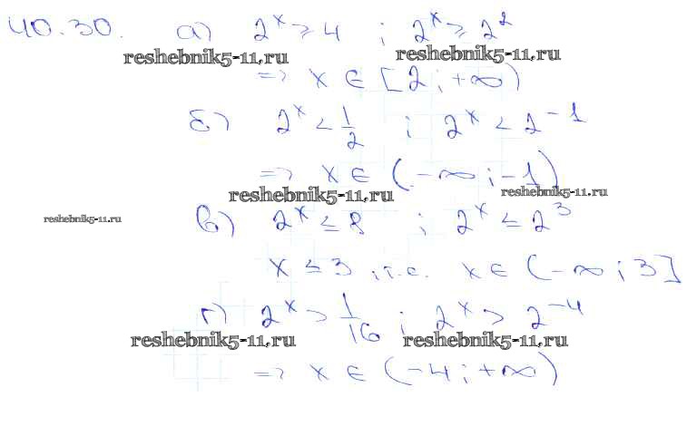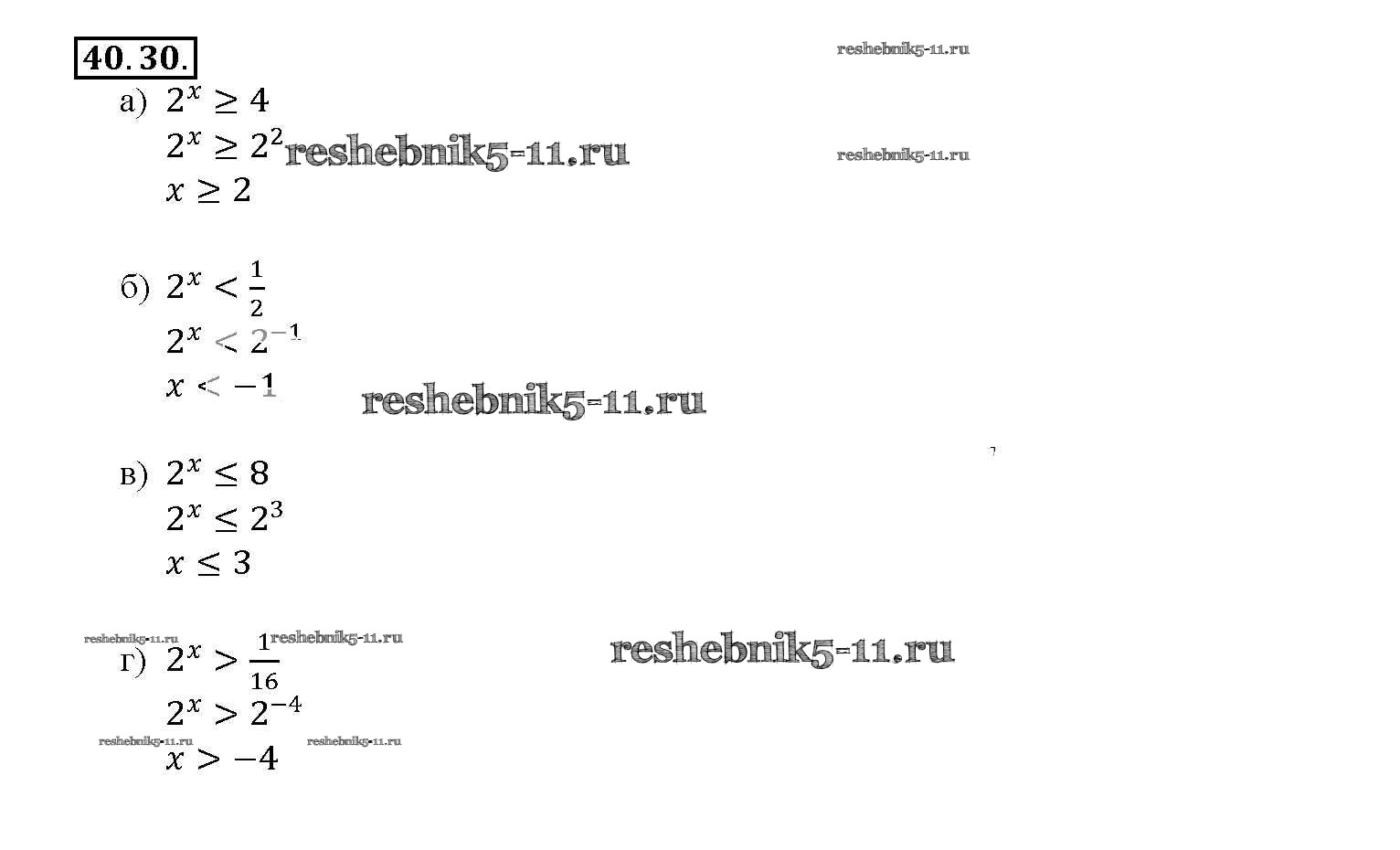 Готовая домашняя работа с ответами по Алгебре за 10, 11 класс Мордкович, Денищева, Корешкова, Мишустина, Семёнов, Тульчинская Задачник Базовый уровень Часть 2 Мнемозина 2015 ФГОС - §40. Показательные уравнения и неравенства 40. 30