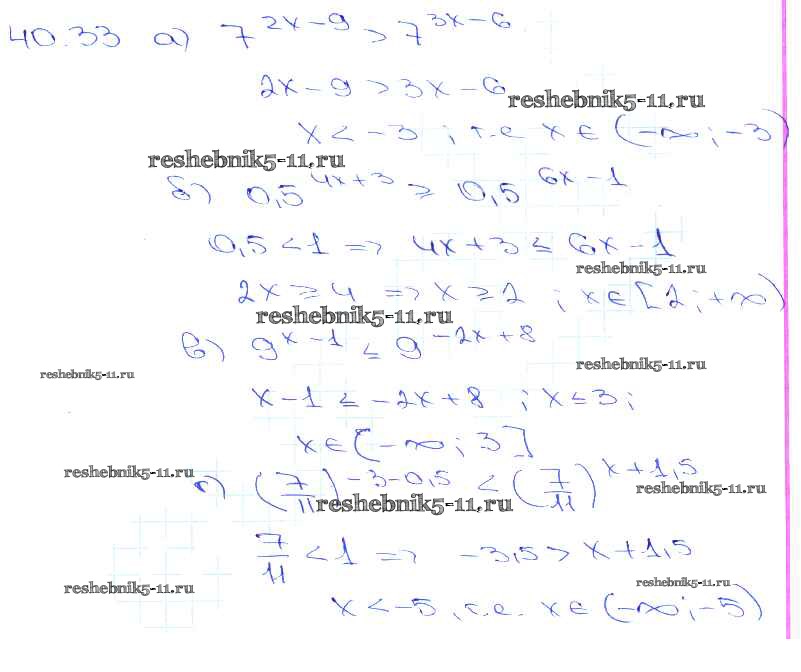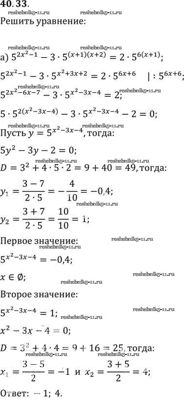 Готовая домашняя работа с ответами по Алгебре за 10, 11 класс Мордкович, Денищева, Корешкова, Мишустина, Семёнов, Тульчинская Задачник Базовый уровень Часть 2 Мнемозина 2015 ФГОС - §40. Показательные уравнения и неравенства 40. 33