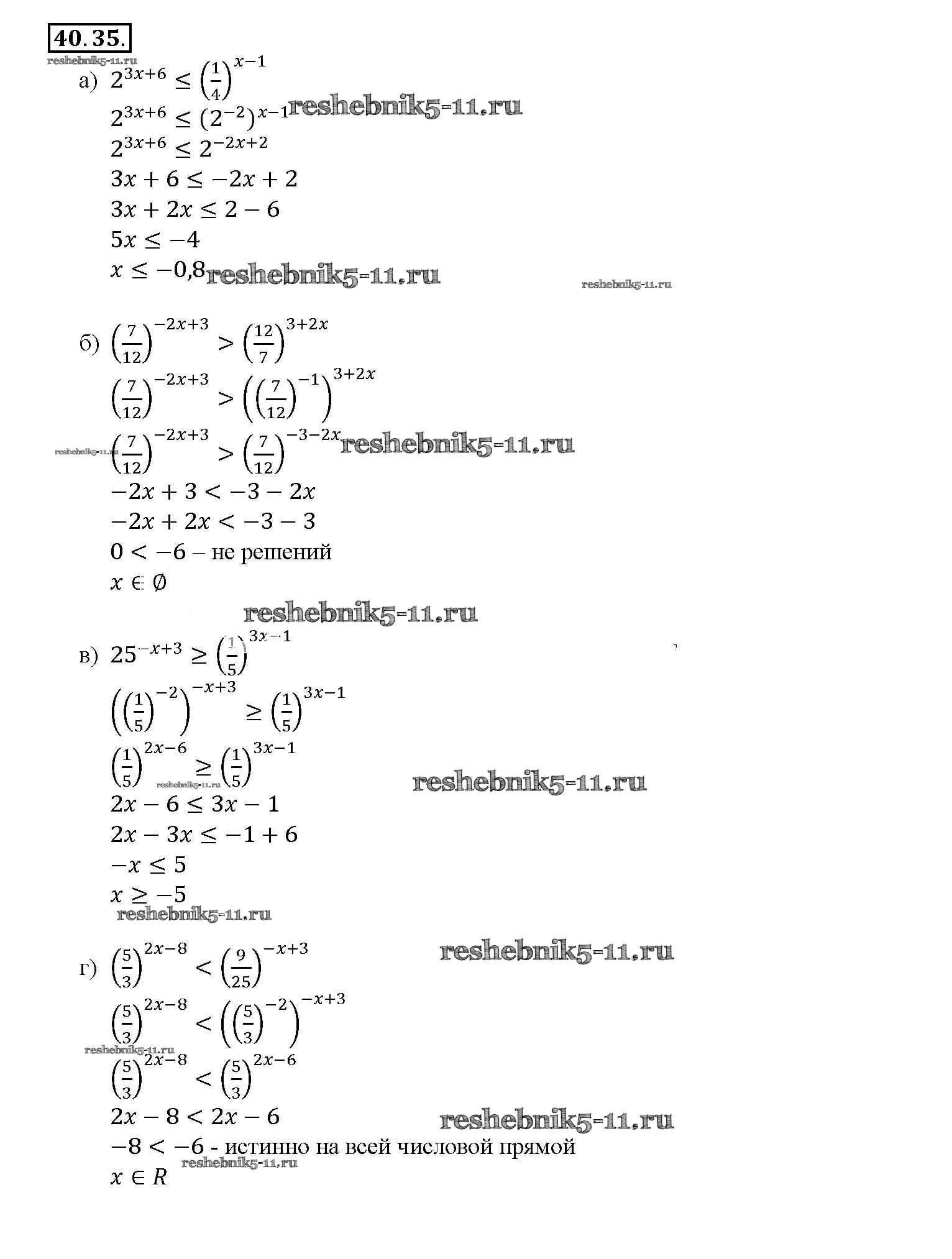 Готовая домашняя работа с ответами по Алгебре за 10, 11 класс Мордкович, Денищева, Корешкова, Мишустина, Семёнов, Тульчинская Задачник Базовый уровень Часть 2 Мнемозина 2015 ФГОС - §40. Показательные уравнения и неравенства 40. 35