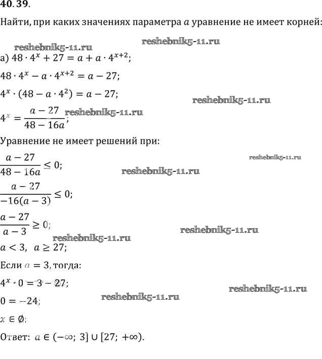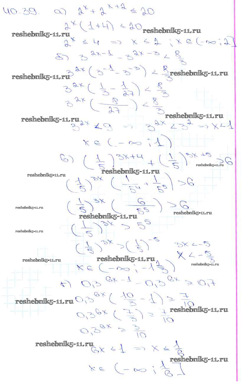 Готовая домашняя работа с ответами по Алгебре за 10, 11 класс Мордкович, Денищева, Корешкова, Мишустина, Семёнов, Тульчинская Задачник Базовый уровень Часть 2 Мнемозина 2015 ФГОС - §40. Показательные уравнения и неравенства 40. 39