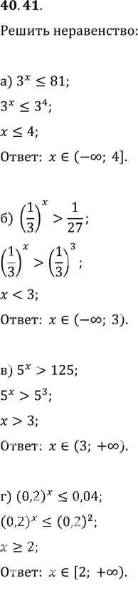 Готовая домашняя работа с ответами по Алгебре за 10, 11 класс Мордкович, Денищева, Корешкова, Мишустина, Семёнов, Тульчинская Задачник Базовый уровень Часть 2 Мнемозина 2015 ФГОС - §40. Показательные уравнения и неравенства 40. 41