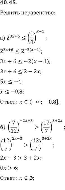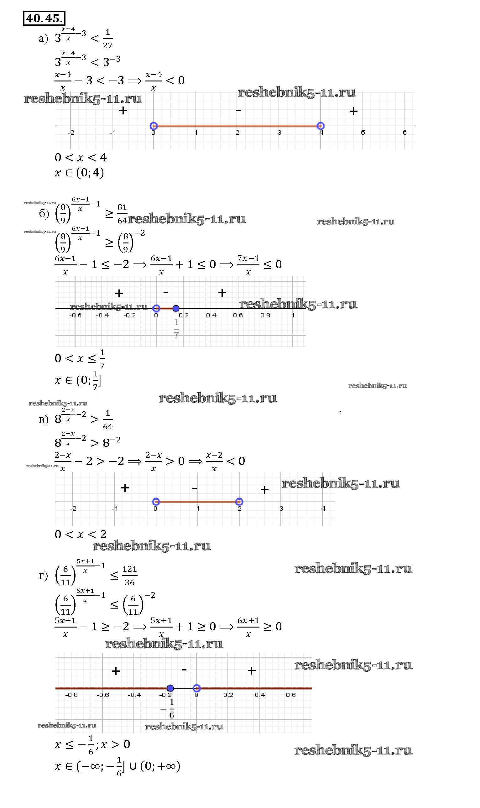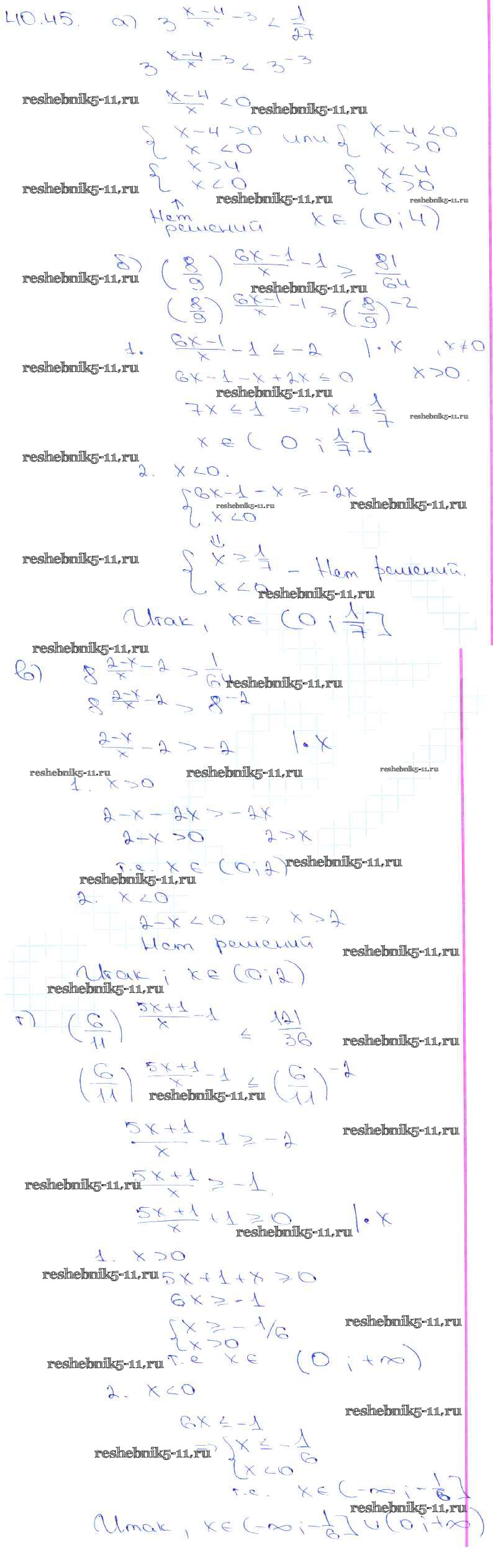 Готовая домашняя работа с ответами по Алгебре за 10, 11 класс Мордкович, Денищева, Корешкова, Мишустина, Семёнов, Тульчинская Задачник Базовый уровень Часть 2 Мнемозина 2015 ФГОС - §40. Показательные уравнения и неравенства 40. 45