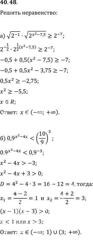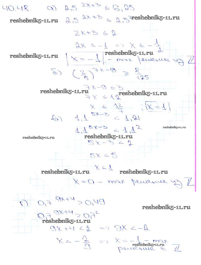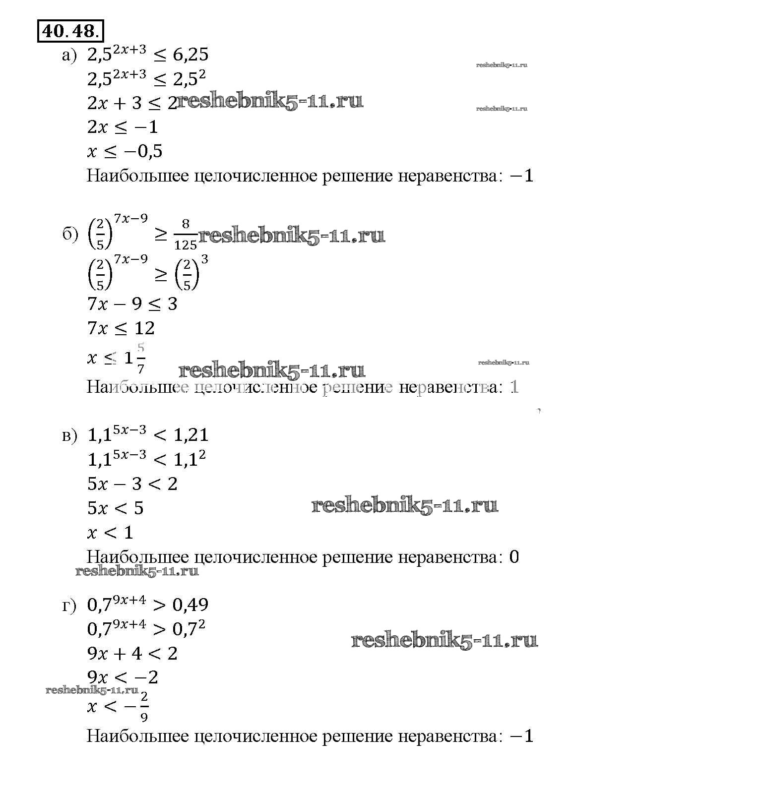 Готовая домашняя работа с ответами по Алгебре за 10, 11 класс Мордкович, Денищева, Корешкова, Мишустина, Семёнов, Тульчинская Задачник Базовый уровень Часть 2 Мнемозина 2015 ФГОС - §40. Показательные уравнения и неравенства 40. 48