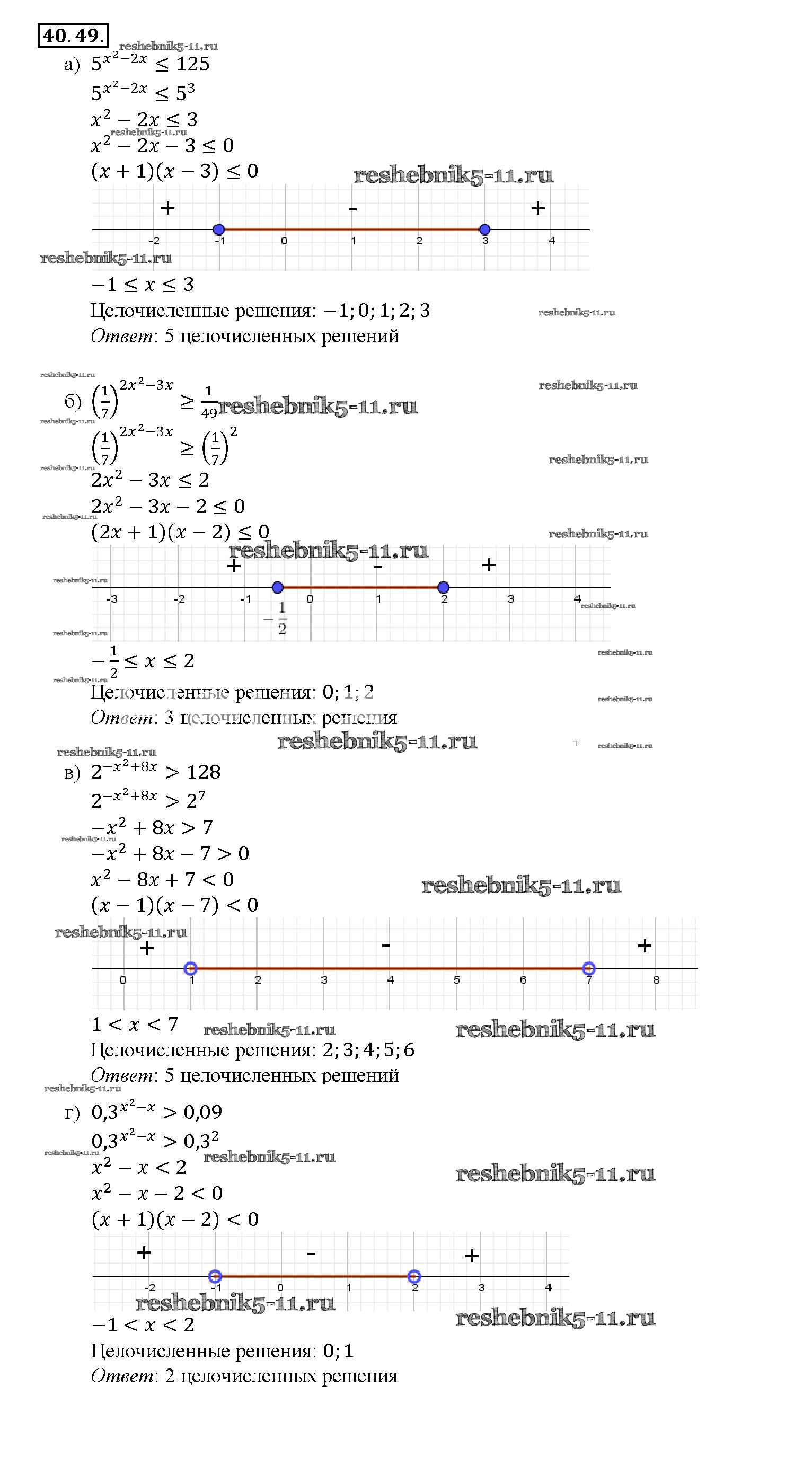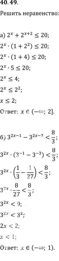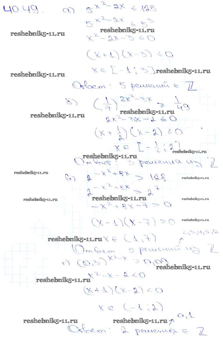 Готовая домашняя работа с ответами по Алгебре за 10, 11 класс Мордкович, Денищева, Корешкова, Мишустина, Семёнов, Тульчинская Задачник Базовый уровень Часть 2 Мнемозина 2015 ФГОС - §40. Показательные уравнения и неравенства 40. 49