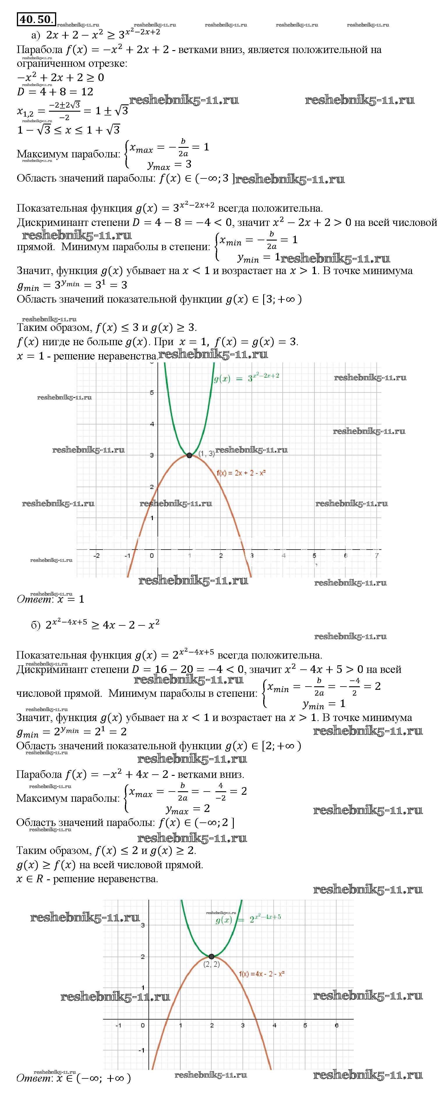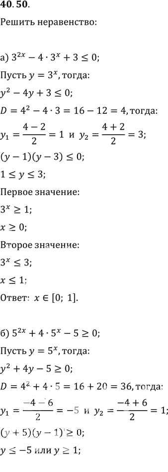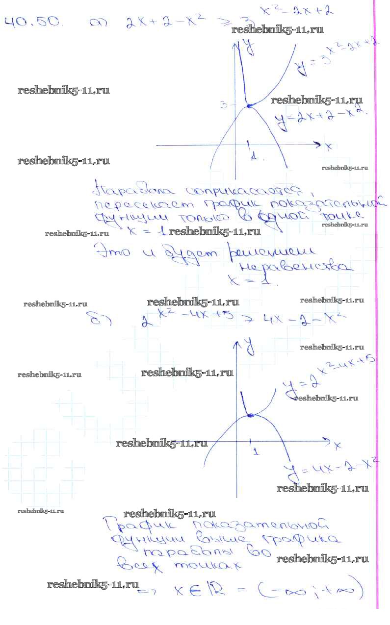 Готовая домашняя работа с ответами по Алгебре за 10, 11 класс Мордкович, Денищева, Корешкова, Мишустина, Семёнов, Тульчинская Задачник Базовый уровень Часть 2 Мнемозина 2015 ФГОС - §40. Показательные уравнения и неравенства 40. 50