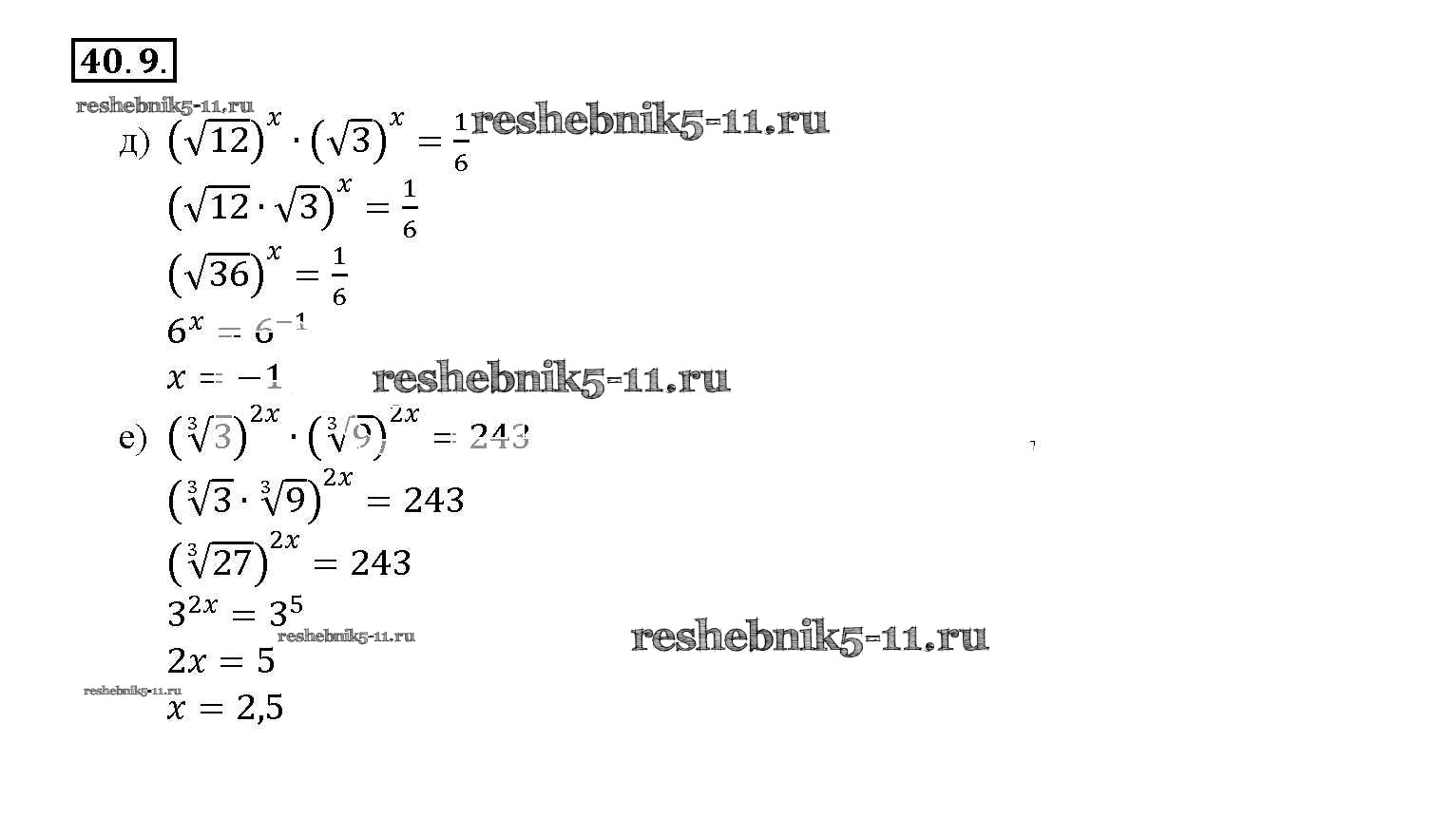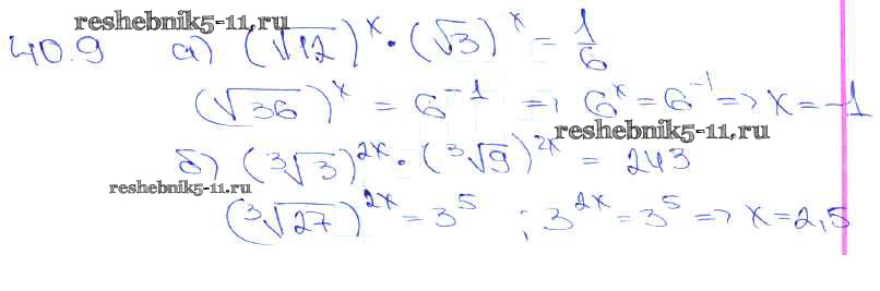 Готовая домашняя работа с ответами по Алгебре за 10, 11 класс Мордкович, Денищева, Корешкова, Мишустина, Семёнов, Тульчинская Задачник Базовый уровень Часть 2 Мнемозина 2015 ФГОС - §40. Показательные уравнения и неравенства 40. 9