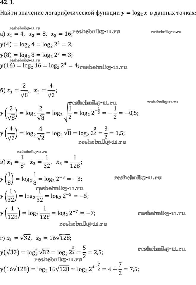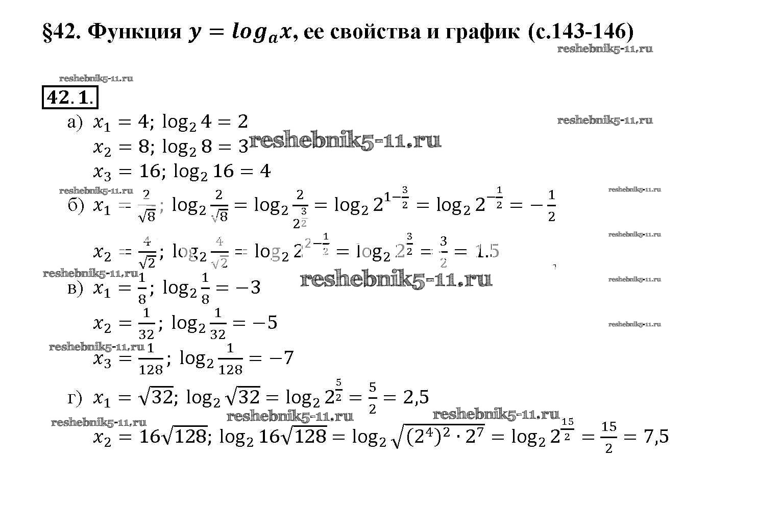Готовая домашняя работа с ответами по Алгебре за 10, 11 класс Мордкович, Денищева, Корешкова, Мишустина, Семёнов, Тульчинская Задачник Базовый уровень Часть 2 Мнемозина 2015 ФГОС - §42. Функция y = loga x, ее свойства и график 42. 1