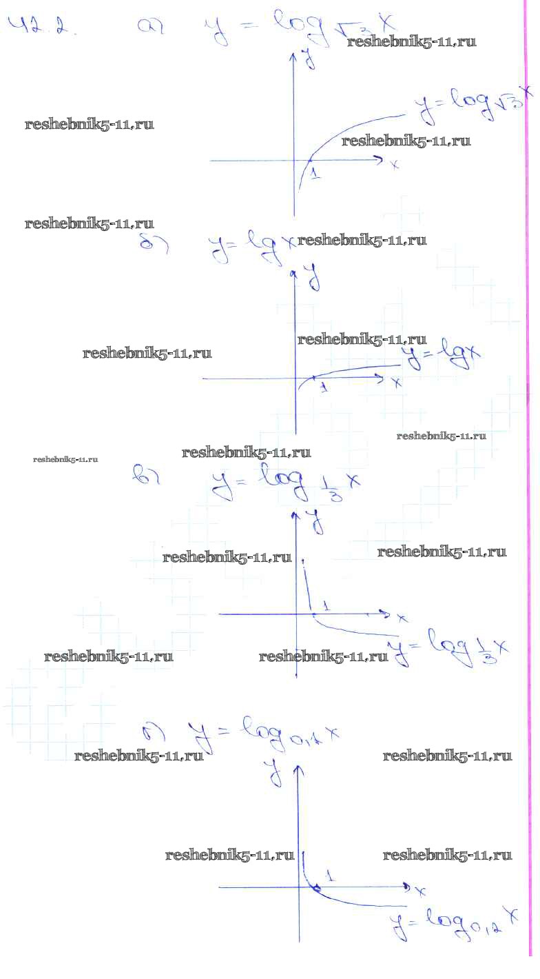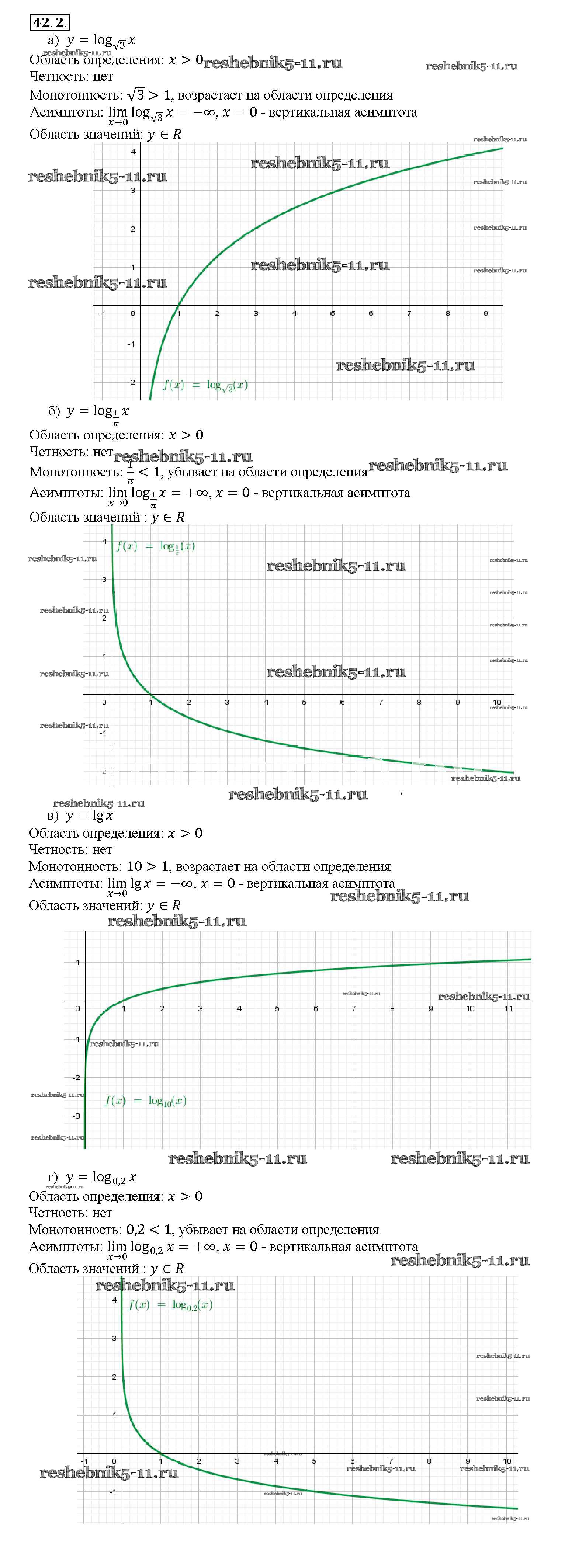 Готовая домашняя работа с ответами по Алгебре за 10, 11 класс Мордкович, Денищева, Корешкова, Мишустина, Семёнов, Тульчинская Задачник Базовый уровень Часть 2 Мнемозина 2015 ФГОС - §42. Функция y = loga x, ее свойства и график 42. 2