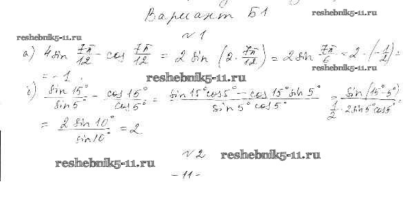 Готовая домашняя работа с ответами по Алгебре за 10, 11 класс Ершова, Голобородько Самостоятельные и контрольные работы Илекса 2016 ФГОС - СР-4. Варианты Б1