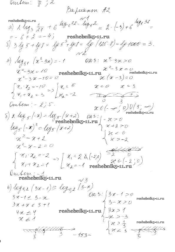 Готовая домашняя работа с ответами по Алгебре за 10, 11 класс Ершова, Голобородько Самостоятельные и контрольные работы Илекса 2016 ФГОС - КР-6. Варианты А2