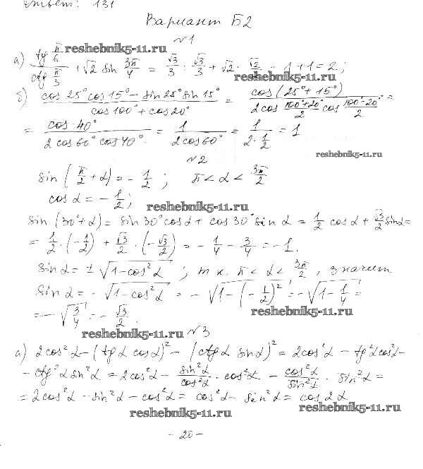 Готовая домашняя работа с ответами по Алгебре за 10, 11 класс Ершова, Голобородько Самостоятельные и контрольные работы Илекса 2016 ФГОС - КР-1. Варианты Б2