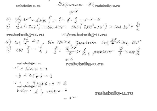 Готовая домашняя работа с ответами по Алгебре за 10, 11 класс Ершова, Голобородько Самостоятельные и контрольные работы Илекса 2016 ФГОС - СР-1. Варианты А2