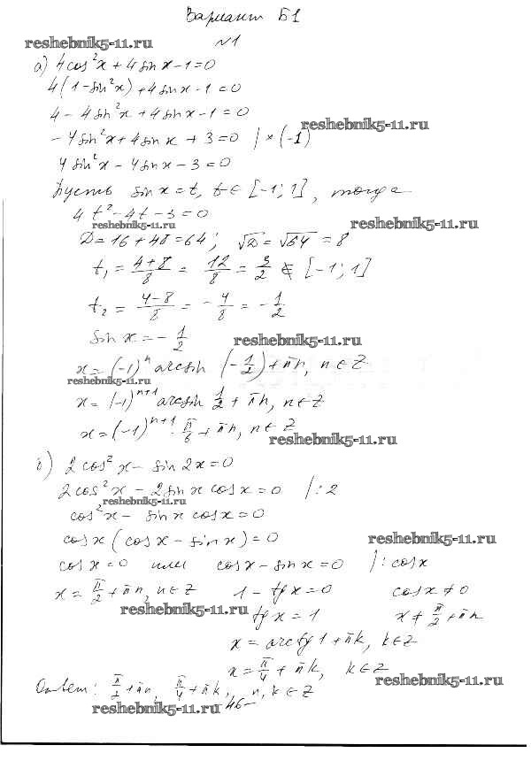 Готовая домашняя работа с ответами по Алгебре за 10, 11 класс Ершова, Голобородько Самостоятельные и контрольные работы Илекса 2016 ФГОС - СР-14. Варианты Б1