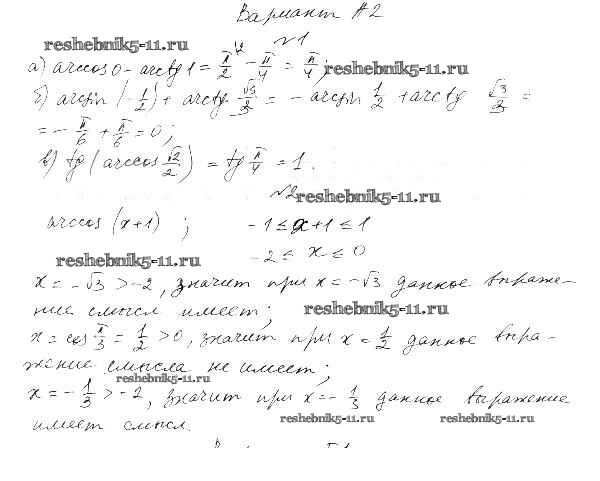Готовая домашняя работа с ответами по Алгебре за 10, 11 класс Ершова, Голобородько Самостоятельные и контрольные работы Илекса 2016 ФГОС - СР-11. Варианты А2