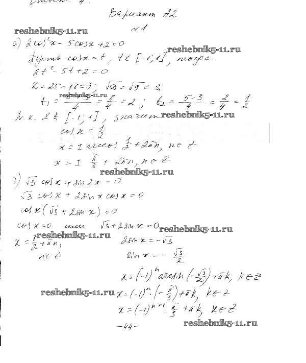 Готовая домашняя работа с ответами по Алгебре за 10, 11 класс Ершова, Голобородько Самостоятельные и контрольные работы Илекса 2016 ФГОС - СР-14. Варианты А2