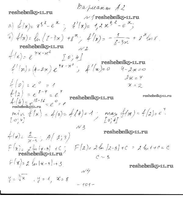 Готовая домашняя работа с ответами по Алгебре за 10, 11 класс Ершова, Голобородько Самостоятельные и контрольные работы Илекса 2016 ФГОС - КР-10. Варианты А2