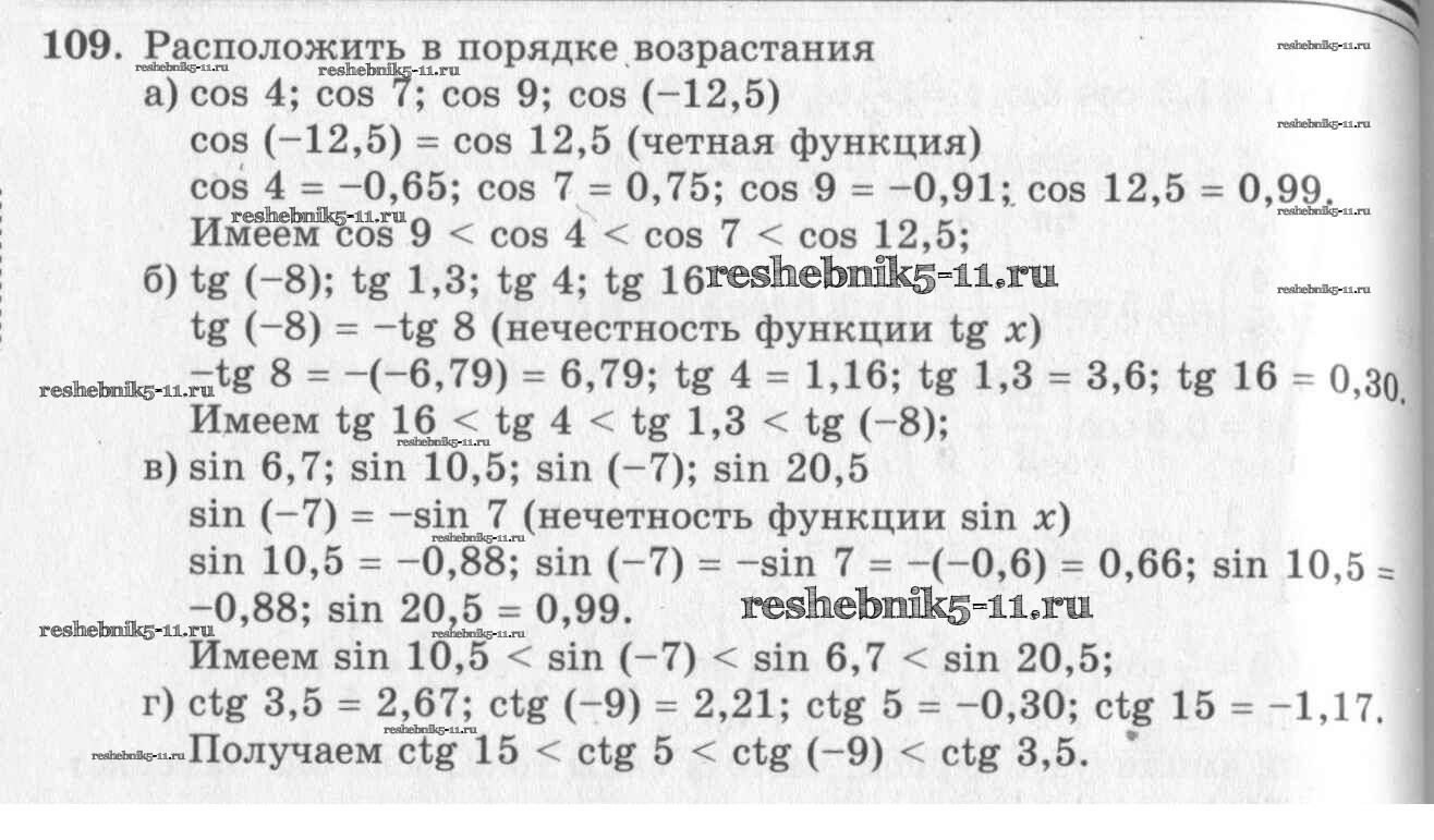 Готовая домашняя работа с ответами по Алгебре за 10, 11 класс Колмогоров, Абрамов, Дудницын, Ивлев, Шварцбурд Учебник Просвещение 2008 ФГОС - Упражнения 109