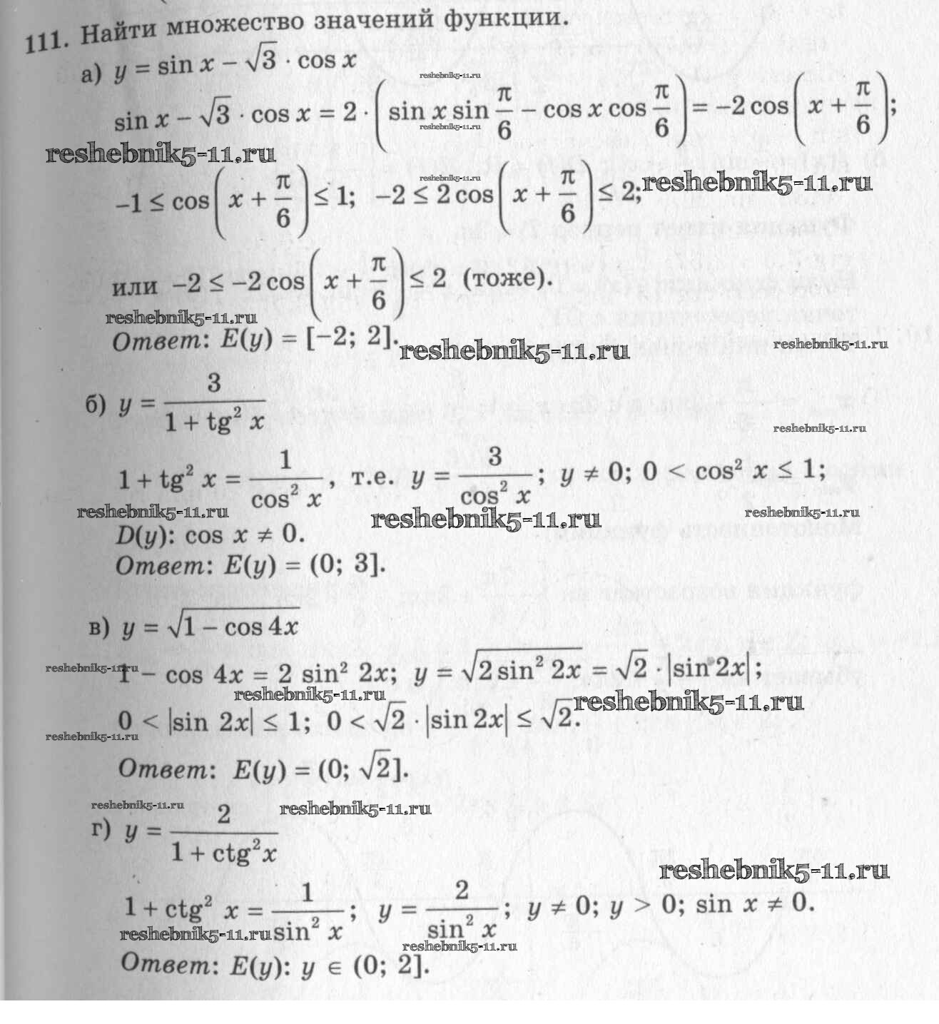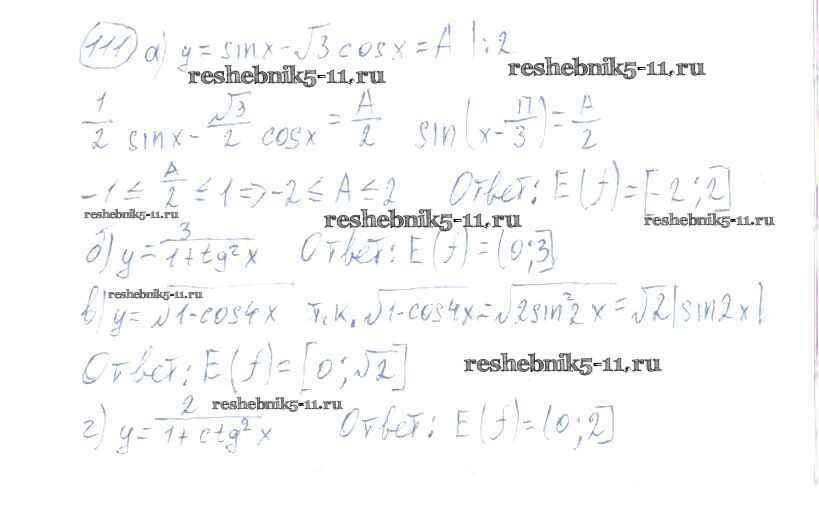 Готовая домашняя работа с ответами по Алгебре за 10, 11 класс Колмогоров, Абрамов, Дудницын, Ивлев, Шварцбурд Учебник Просвещение 2008 ФГОС - Упражнения 111