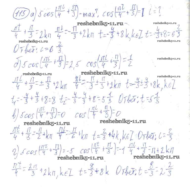 Готовая домашняя работа с ответами по Алгебре за 10, 11 класс Колмогоров, Абрамов, Дудницын, Ивлев, Шварцбурд Учебник Просвещение 2008 ФГОС - Упражнения 115