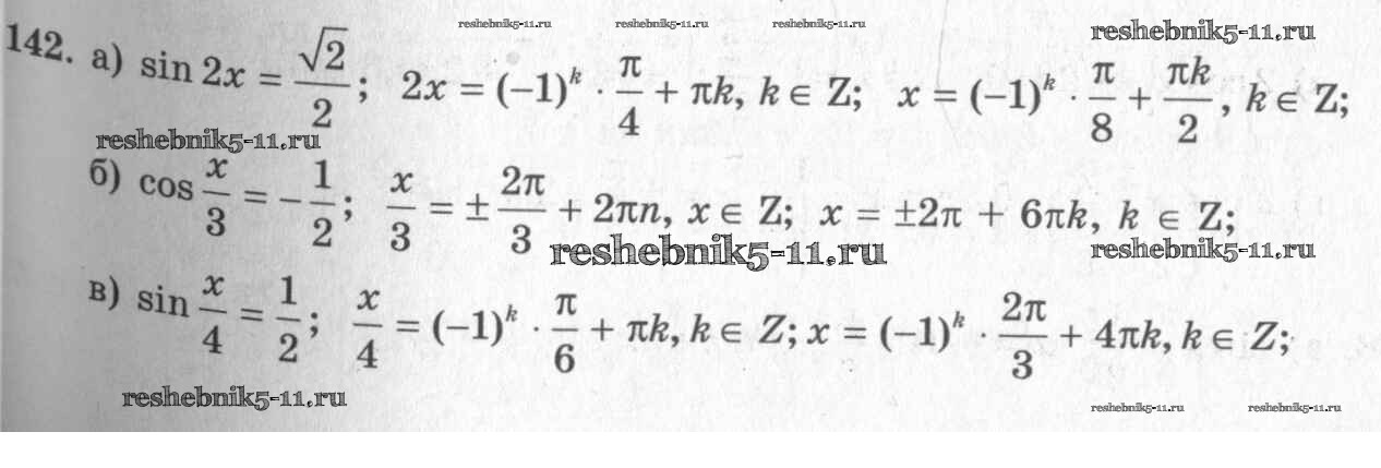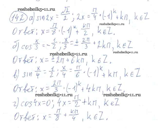 Готовая домашняя работа с ответами по Алгебре за 10, 11 класс Колмогоров, Абрамов, Дудницын, Ивлев, Шварцбурд Учебник Просвещение 2008 ФГОС - Упражнения 142