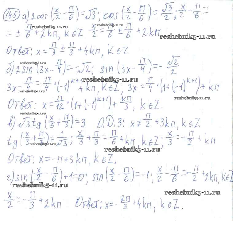 Готовая домашняя работа с ответами по Алгебре за 10, 11 класс Колмогоров, Абрамов, Дудницын, Ивлев, Шварцбурд Учебник Просвещение 2008 ФГОС - Упражнения 145
