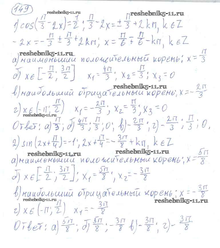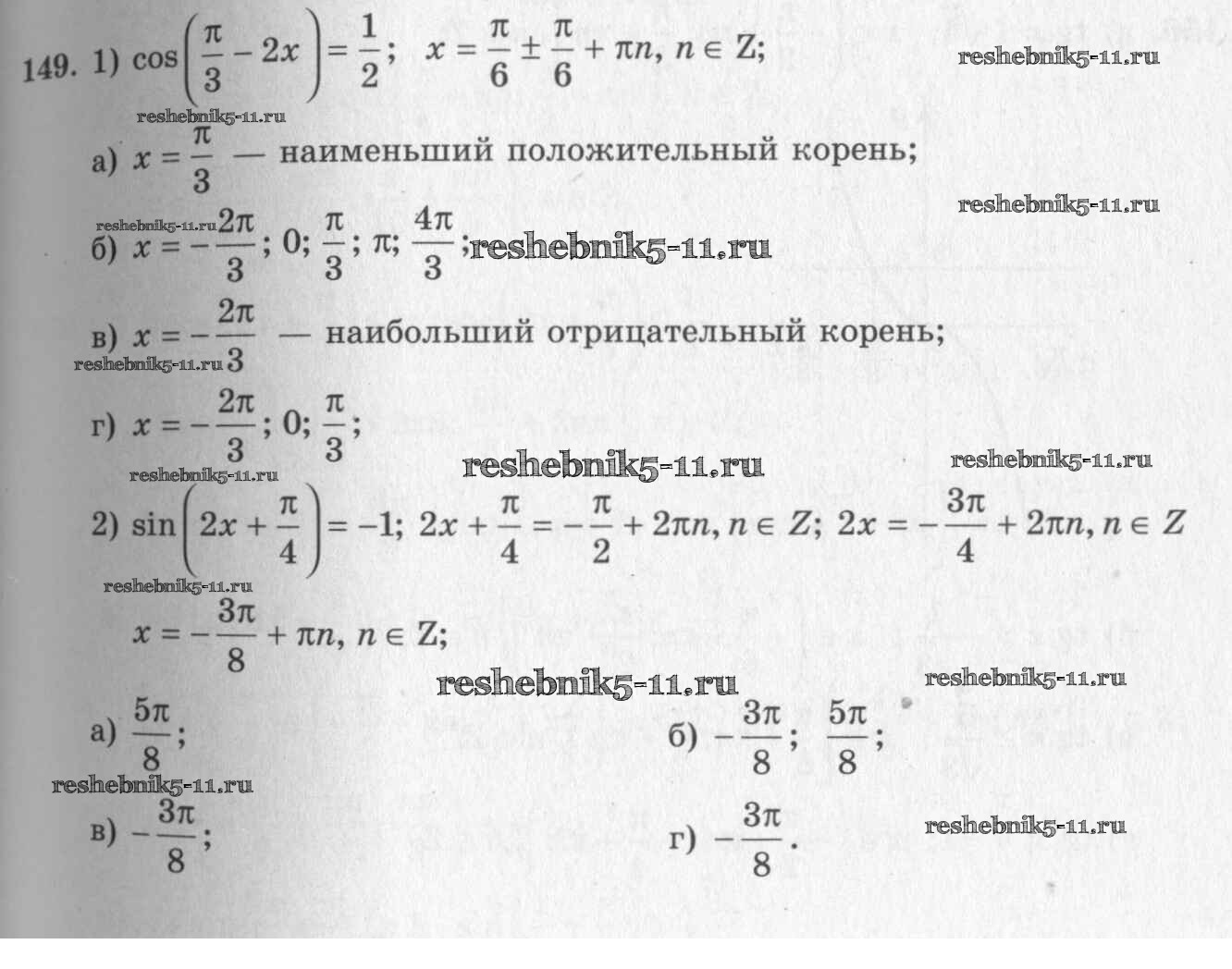 Готовая домашняя работа с ответами по Алгебре за 10, 11 класс Колмогоров, Абрамов, Дудницын, Ивлев, Шварцбурд Учебник Просвещение 2008 ФГОС - Упражнения 149