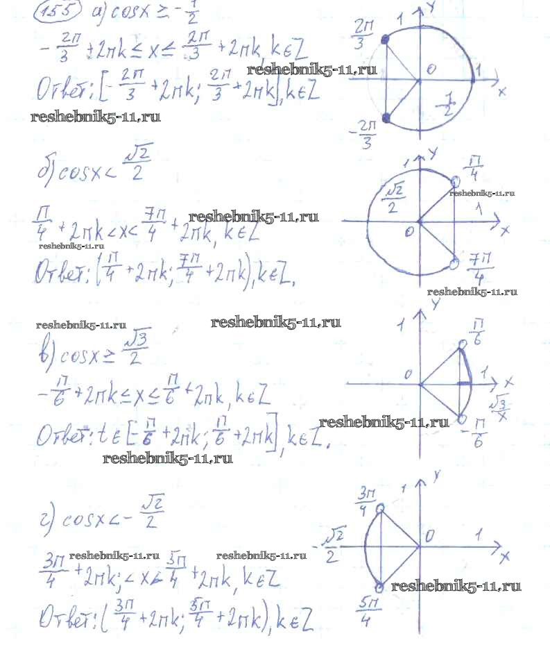 Готовая домашняя работа с ответами по Алгебре за 10, 11 класс Колмогоров, Абрамов, Дудницын, Ивлев, Шварцбурд Учебник Просвещение 2008 ФГОС - Упражнения 155