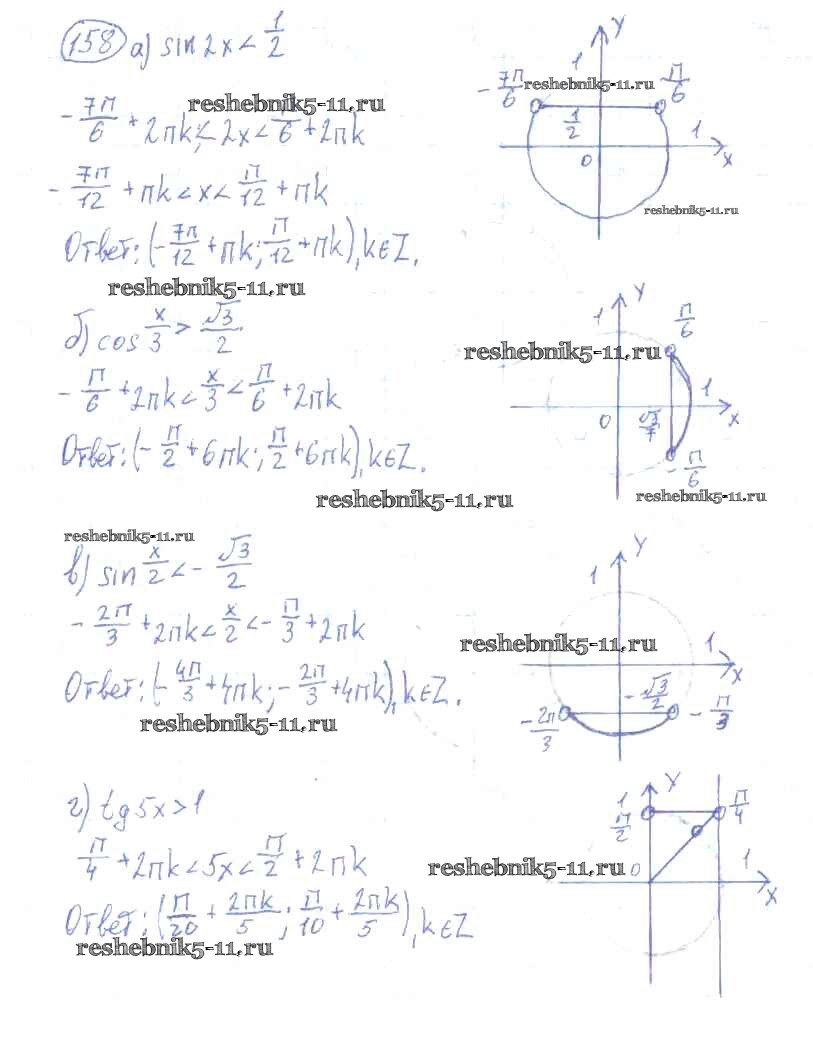 Готовая домашняя работа с ответами по Алгебре за 10, 11 класс Колмогоров, Абрамов, Дудницын, Ивлев, Шварцбурд Учебник Просвещение 2008 ФГОС - Упражнения 158
