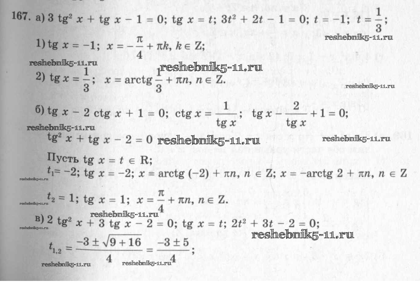 Готовая домашняя работа с ответами по Алгебре за 10, 11 класс Колмогоров, Абрамов, Дудницын, Ивлев, Шварцбурд Учебник Просвещение 2008 ФГОС - Упражнения 167