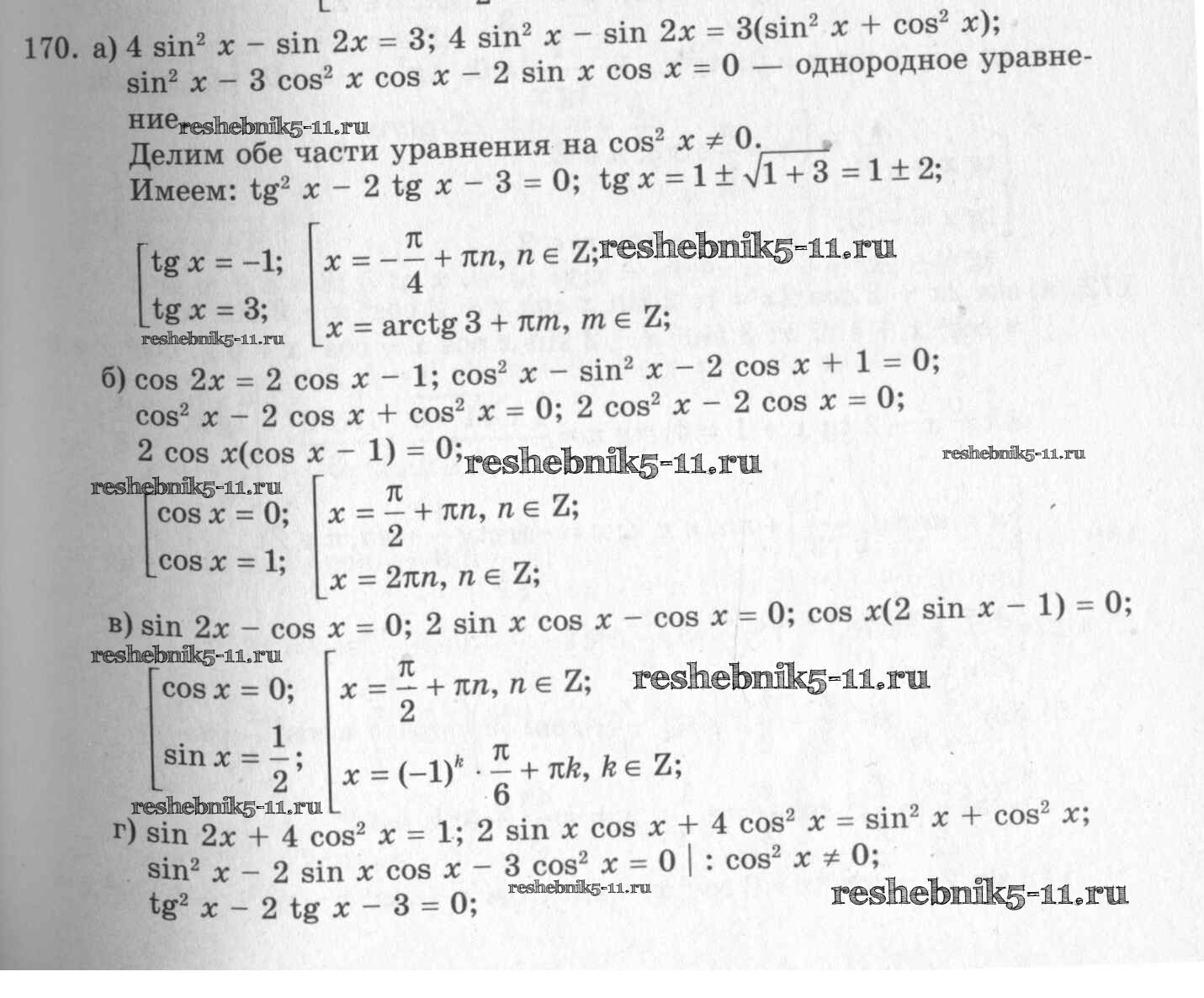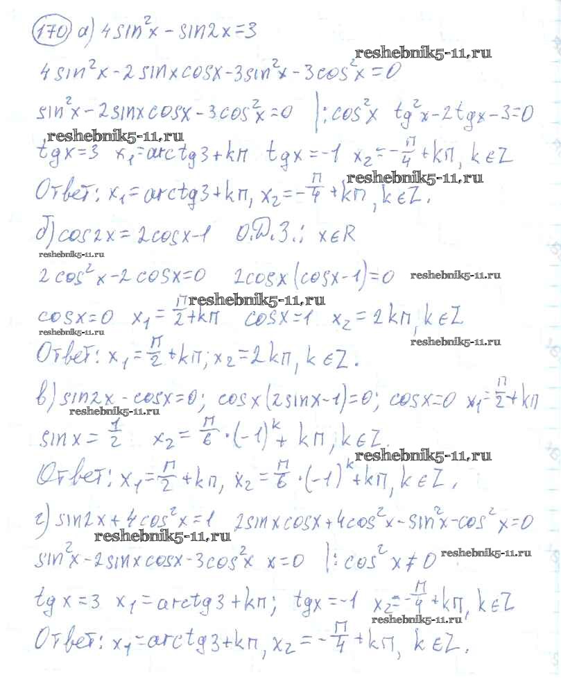Готовая домашняя работа с ответами по Алгебре за 10, 11 класс Колмогоров, Абрамов, Дудницын, Ивлев, Шварцбурд Учебник Просвещение 2008 ФГОС - Упражнения 170
