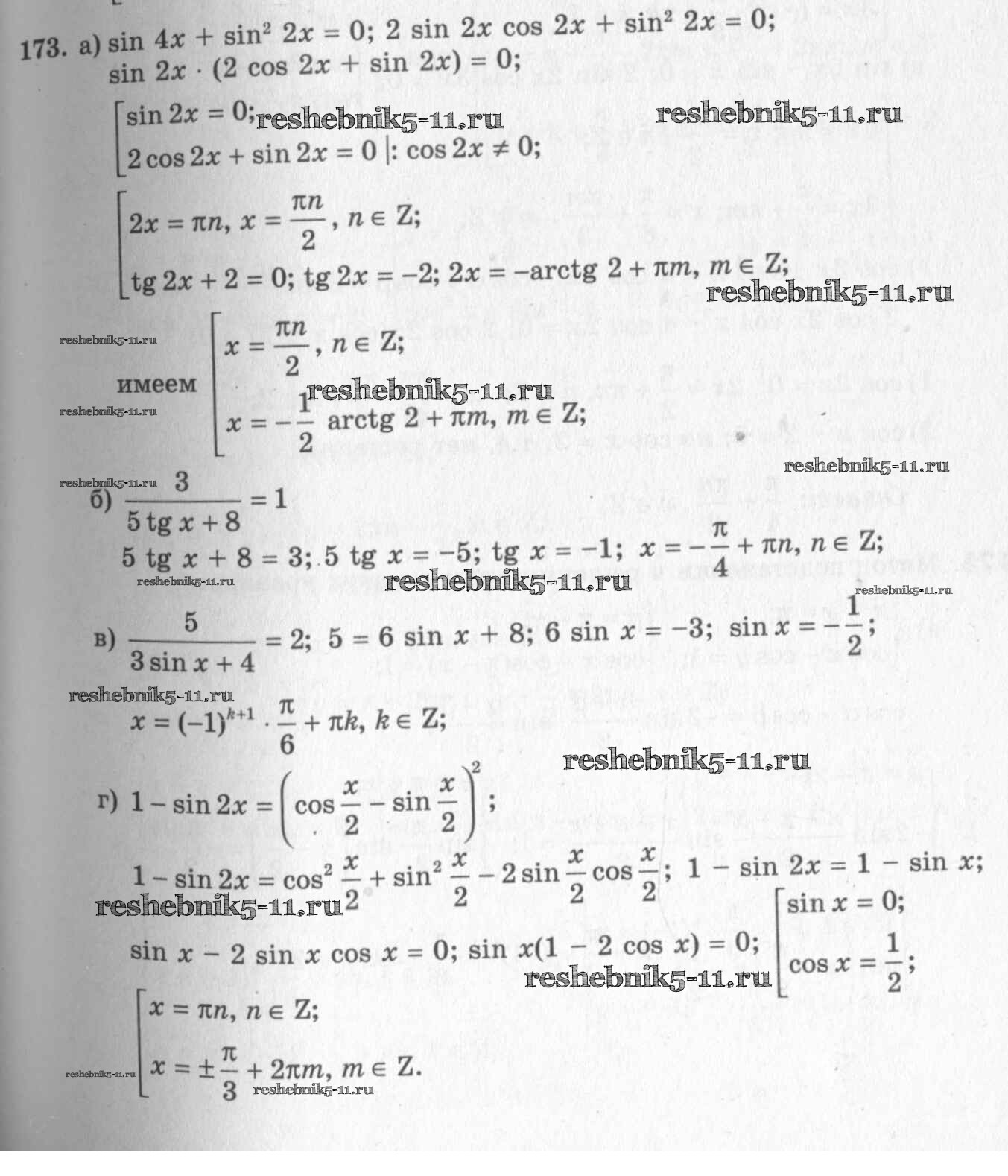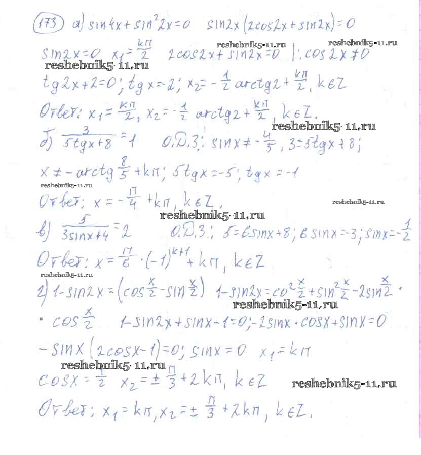 Готовая домашняя работа с ответами по Алгебре за 10, 11 класс Колмогоров, Абрамов, Дудницын, Ивлев, Шварцбурд Учебник Просвещение 2008 ФГОС - Упражнения 173