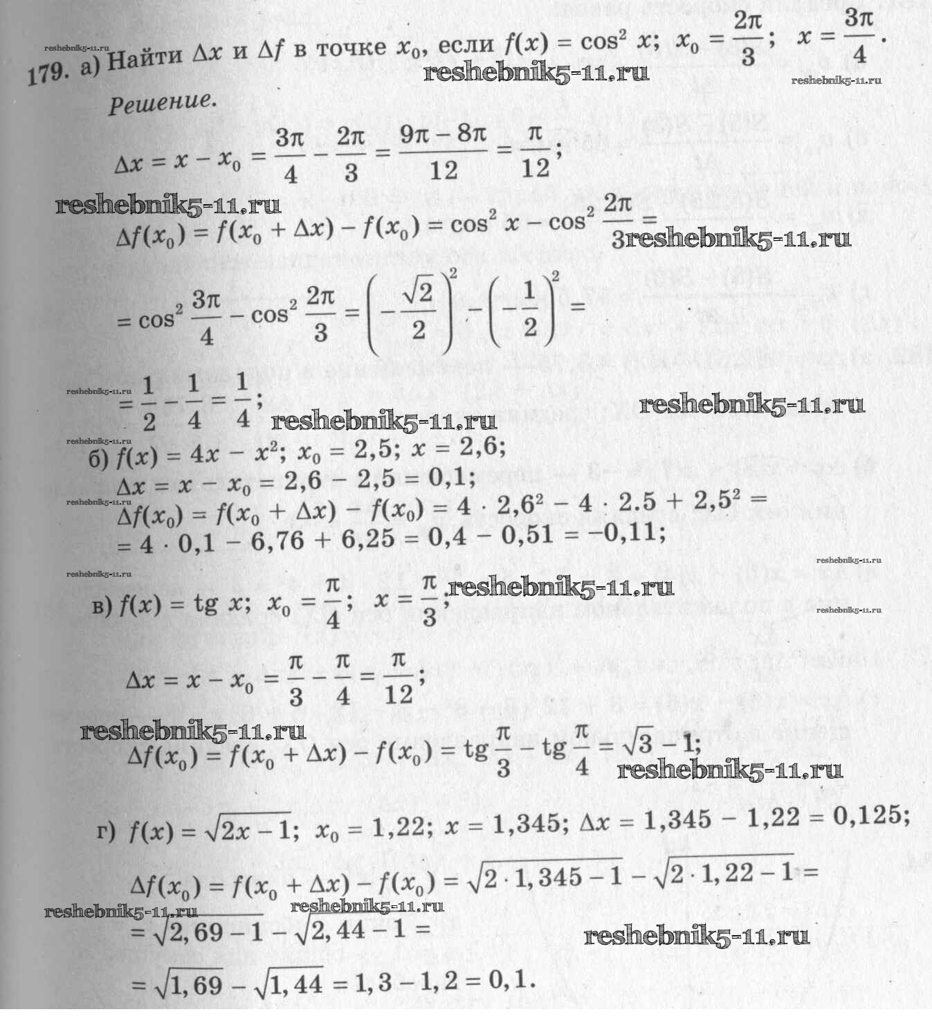 Готовая домашняя работа с ответами по Алгебре за 10, 11 класс Колмогоров, Абрамов, Дудницын, Ивлев, Шварцбурд Учебник Просвещение 2008 ФГОС - Упражнения 179