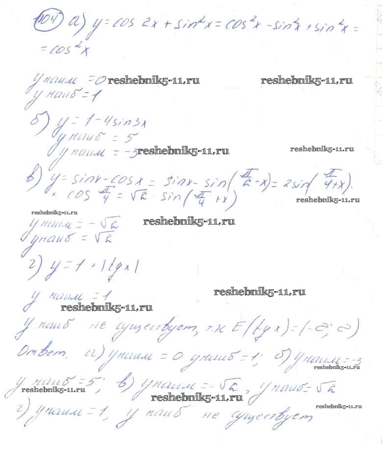 Готовая домашняя работа с ответами по Алгебре за 10, 11 класс Колмогоров, Абрамов, Дудницын, Ивлев, Шварцбурд Учебник Просвещение 2008 ФГОС - Повторение 104