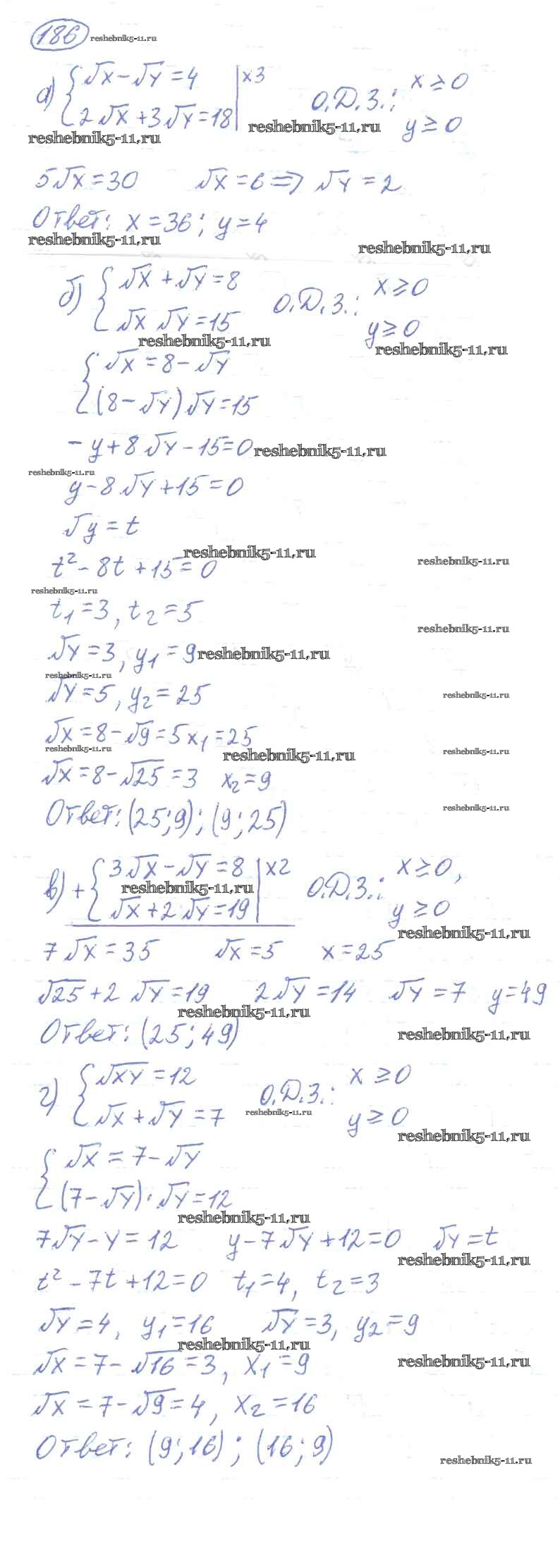 Готовая домашняя работа с ответами по Алгебре за 10, 11 класс Колмогоров, Абрамов, Дудницын, Ивлев, Шварцбурд Учебник Просвещение 2008 ФГОС - Повторение 186